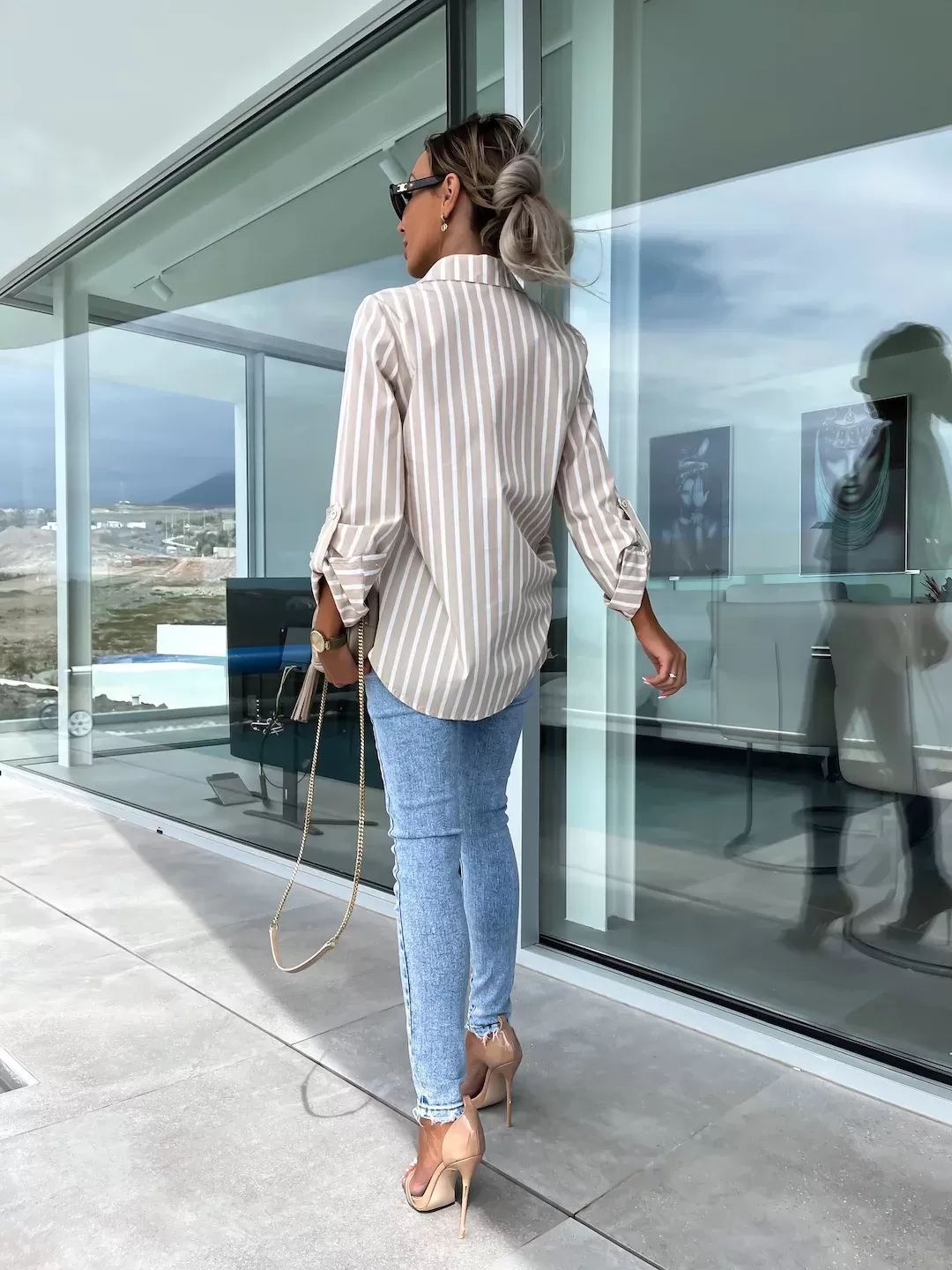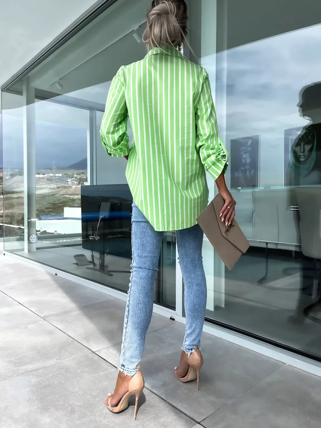 Spring And Autumn European And American Ladies Shirt Long Sleeve Striped Printing