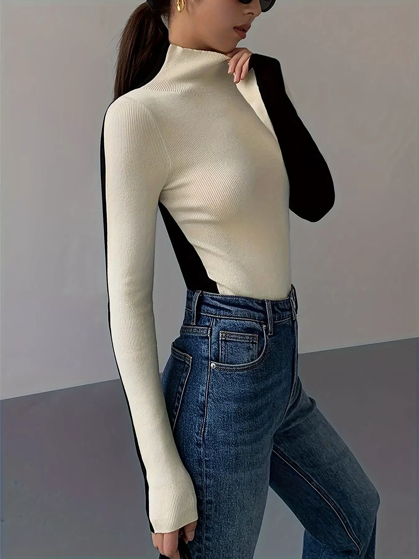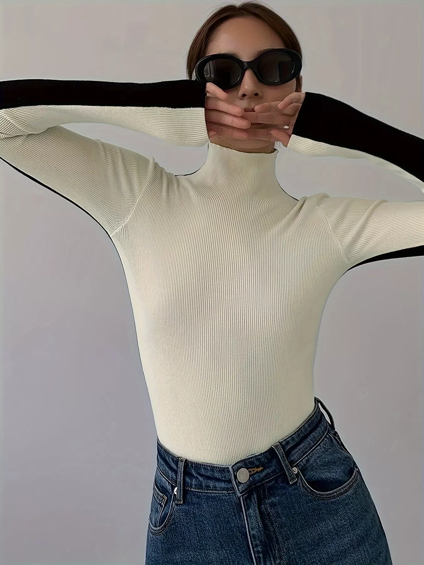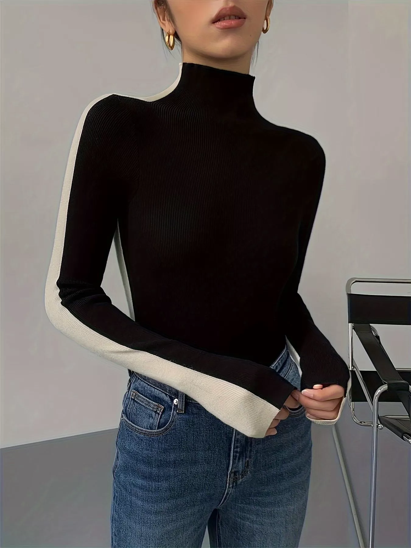 Black With High Collar Knitted New Versatile Long Sleeves Black With High Collar Knitted New Versatile Long Sleeves