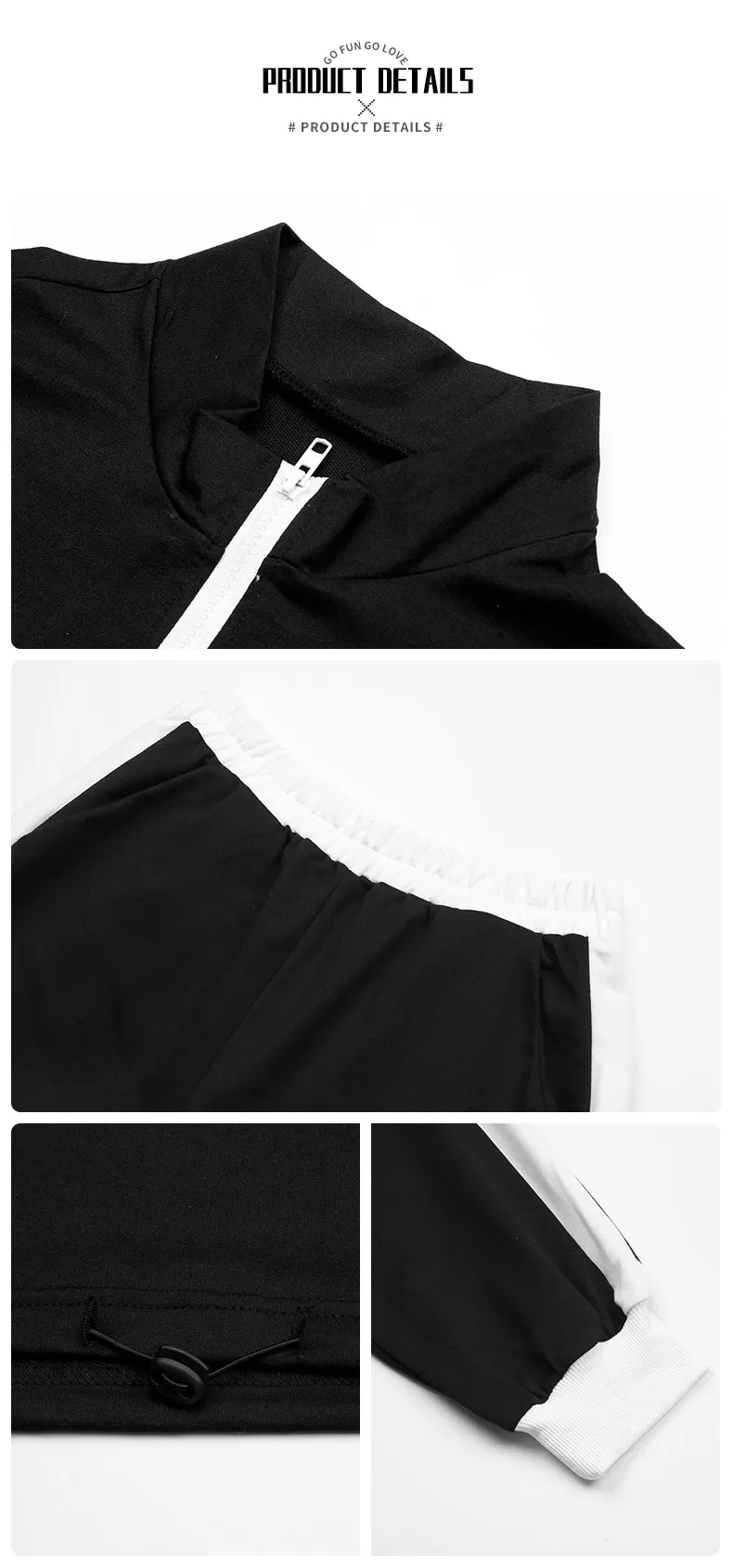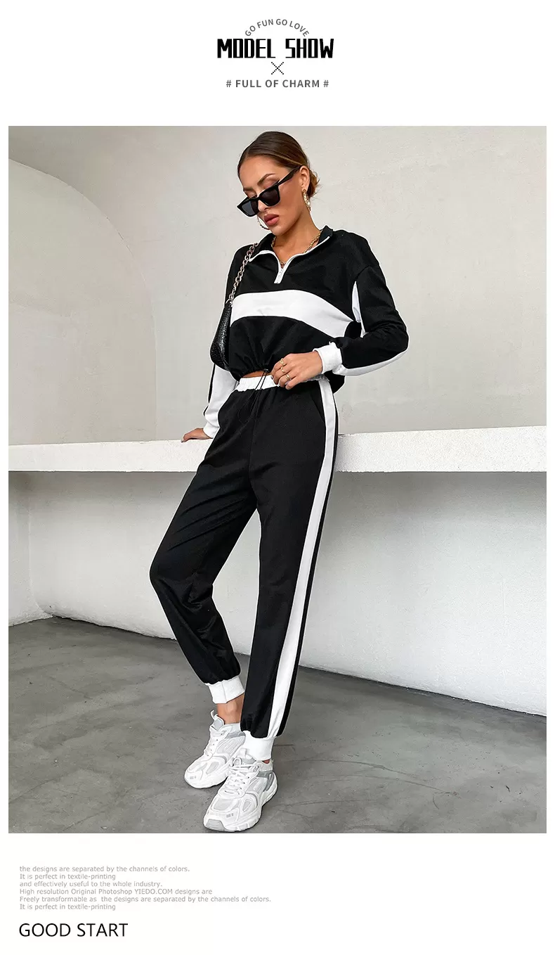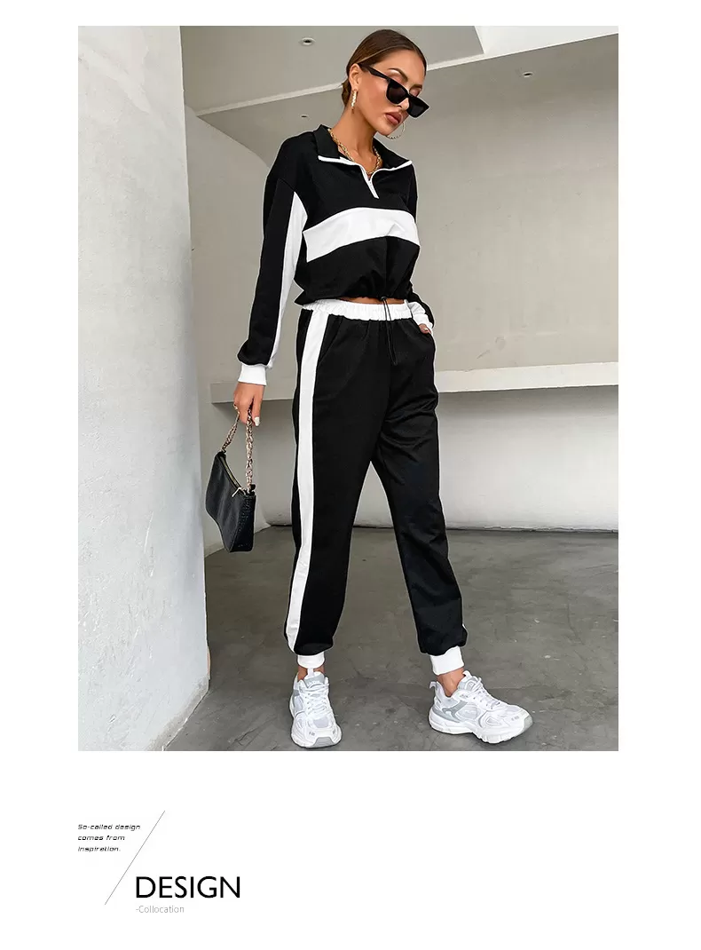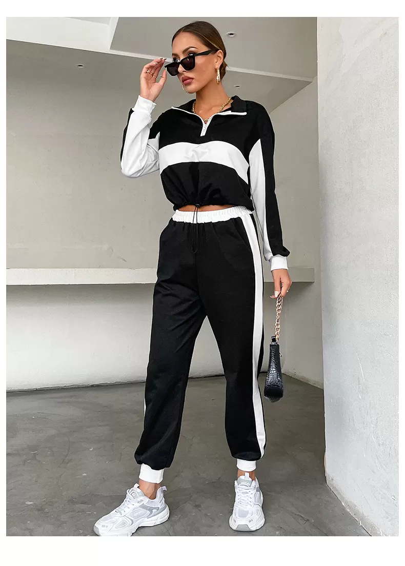 Patchwork Stand-up Collar Sweater Casual Suit Two-piece Set Patchwork Stand-up Collar Sweater Casual Suit Two-piece Set