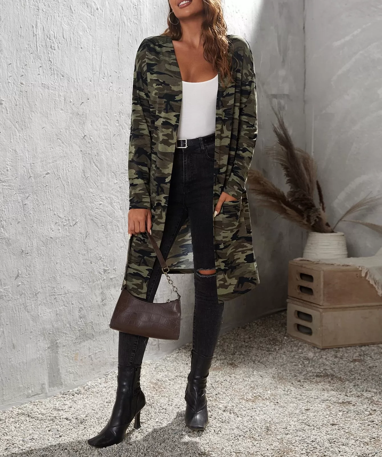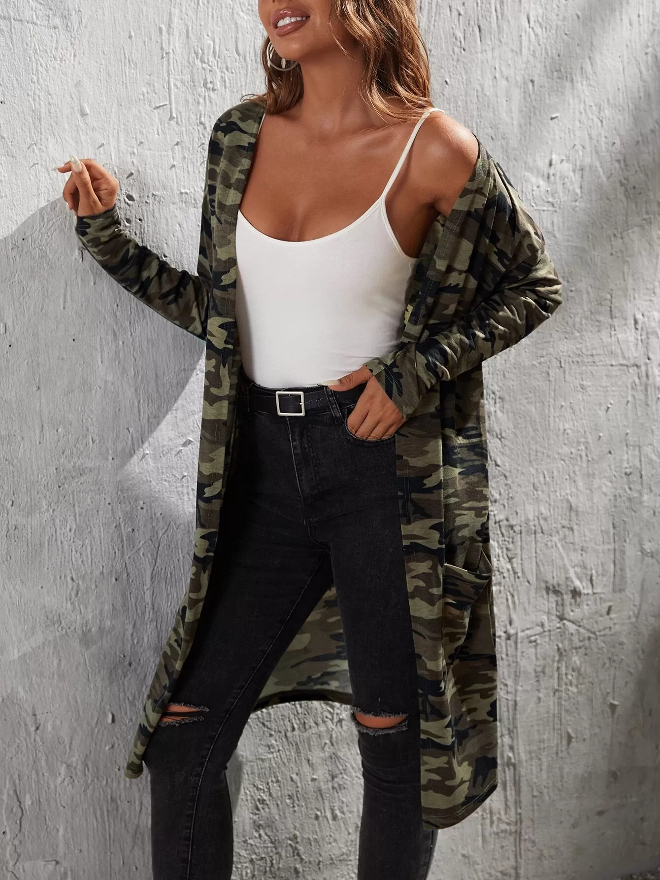 Camouflage Printed Pocket Women's Long Top Camouflage Printed Pocket Women's Long Top