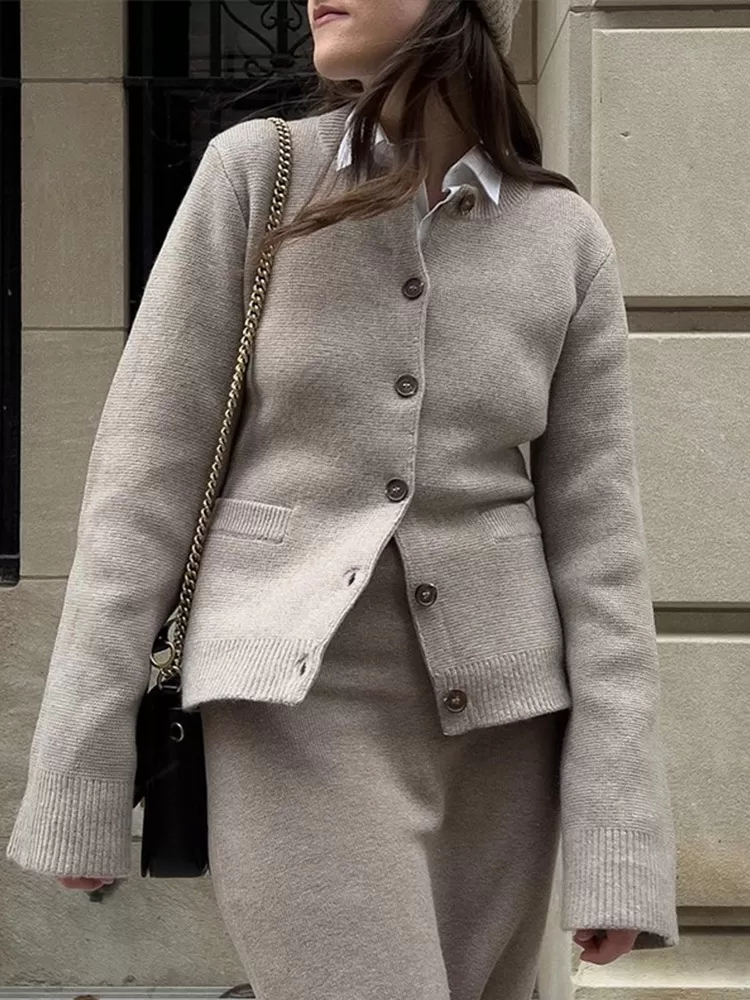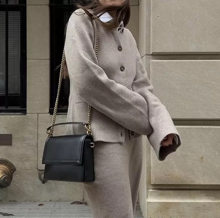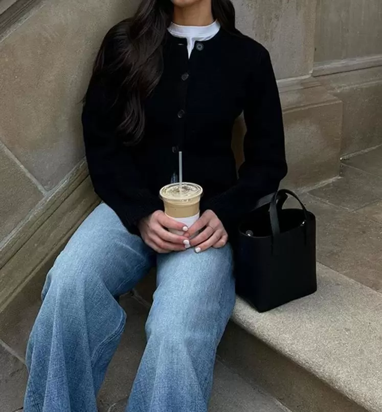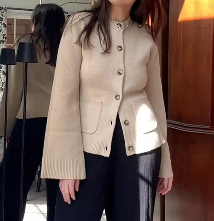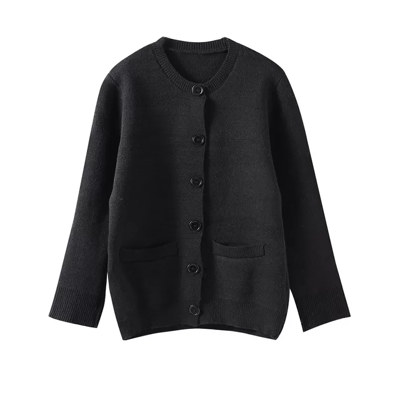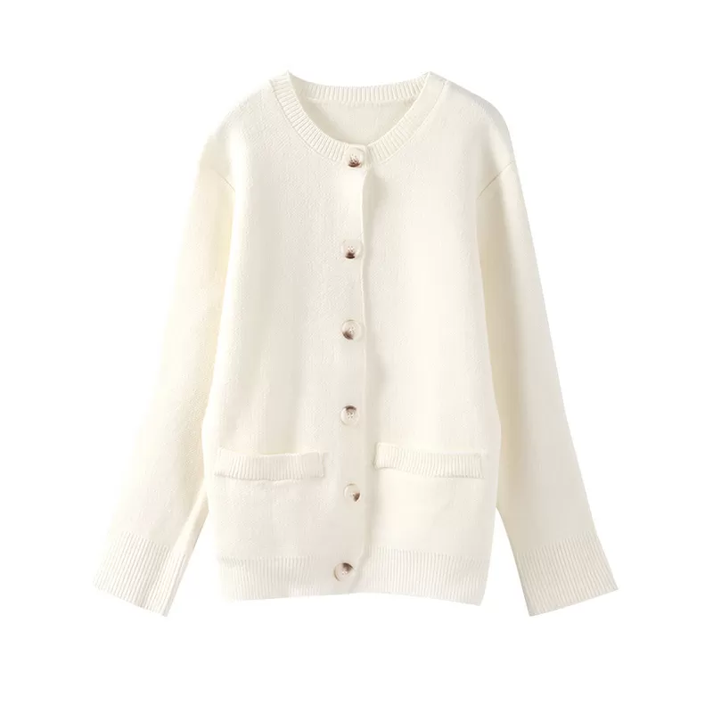 Color: round neck single-breasted cardigan-black, round neck single-breasted cardigan-taupe, round neck single-breasted cardigan-Ivory White
