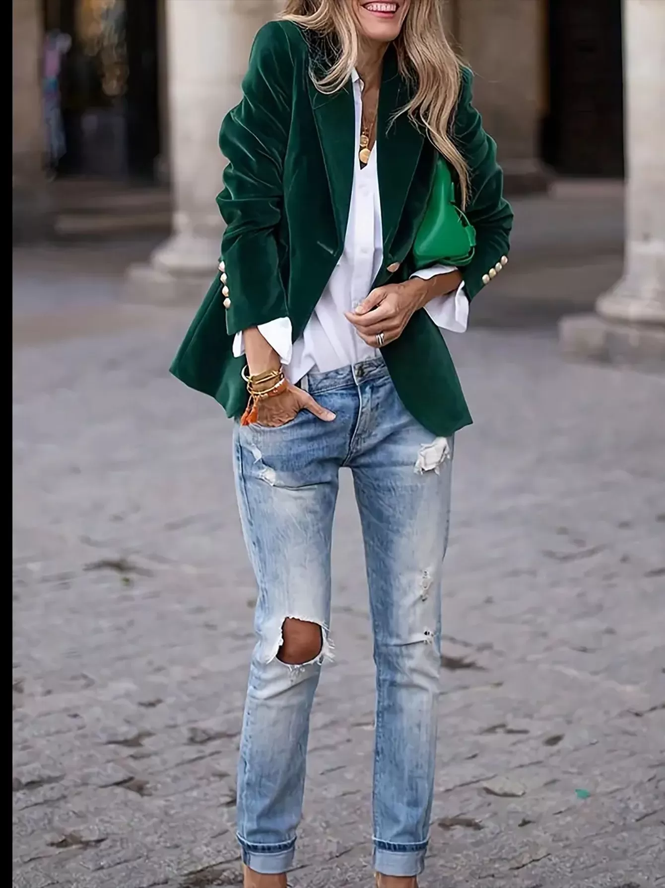 Gold Velvet Elegant Slim Fit Small Business Suit Coat