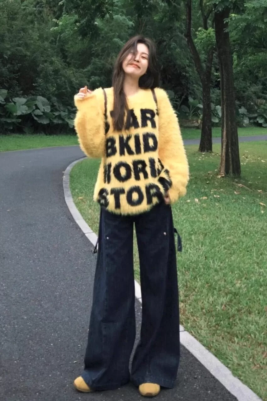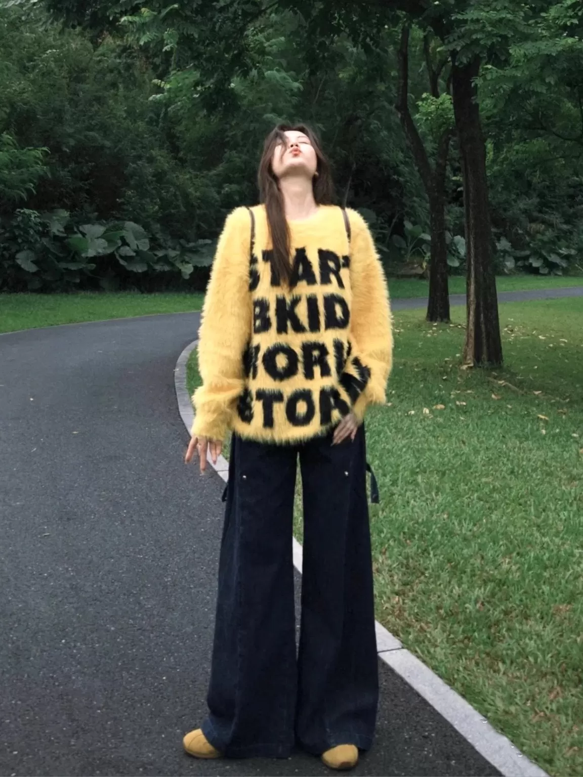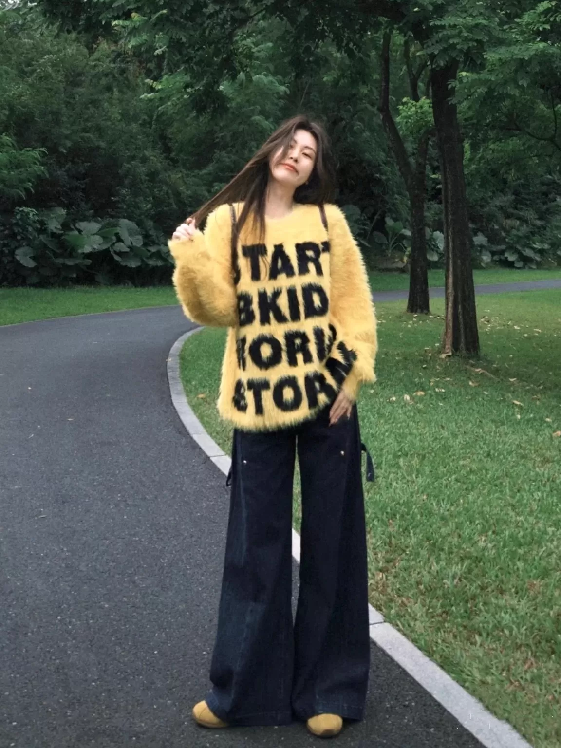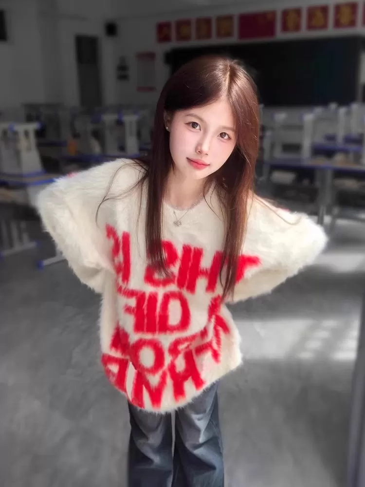 American Round Neck Mink Letter Sweater Fall Winter Couples Trendy Brand Niche American Round Neck Mink Letter Sweater Fall Winter Couples Trendy Brand Niche