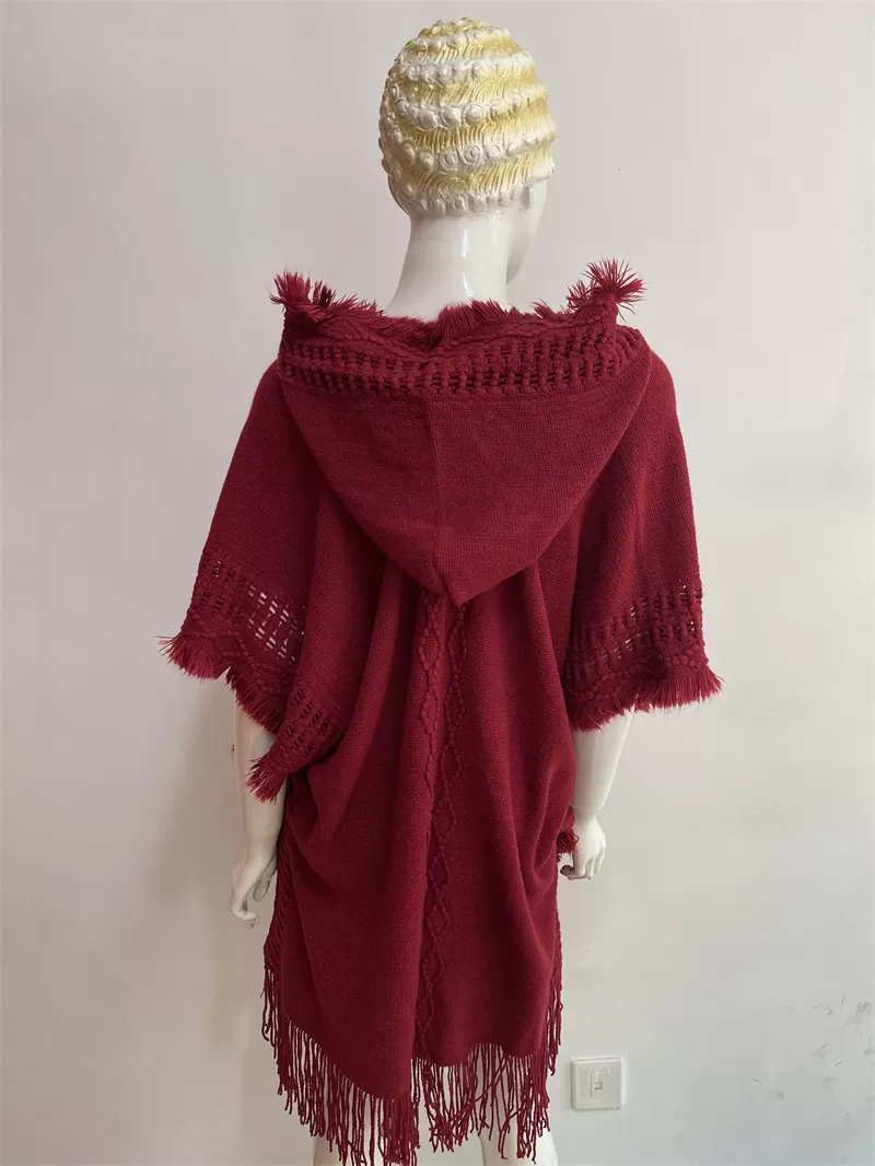Autumn And Winter European And American Plus Size Hooded Pullover Sweater Tassel Batwing Shirt
