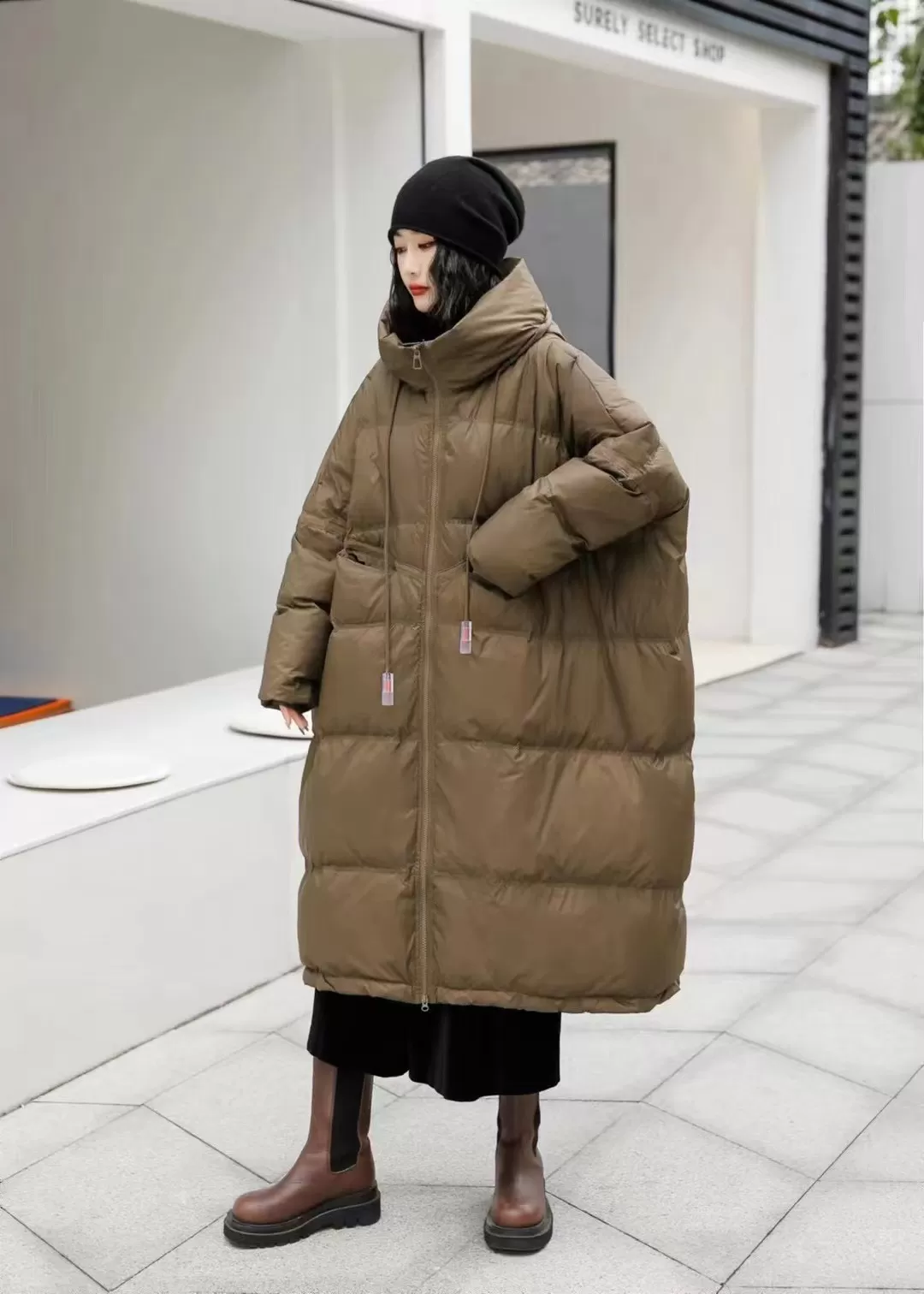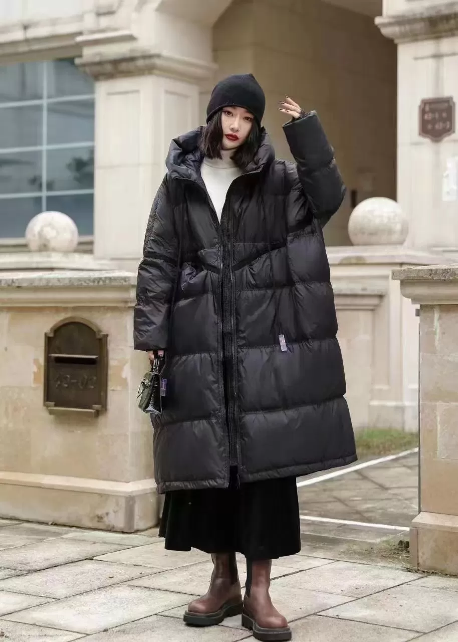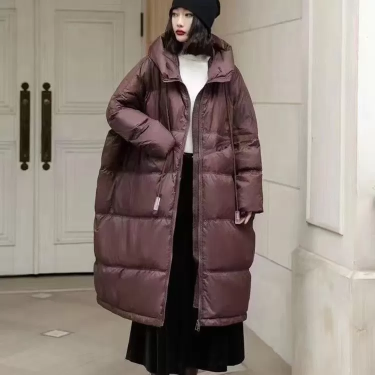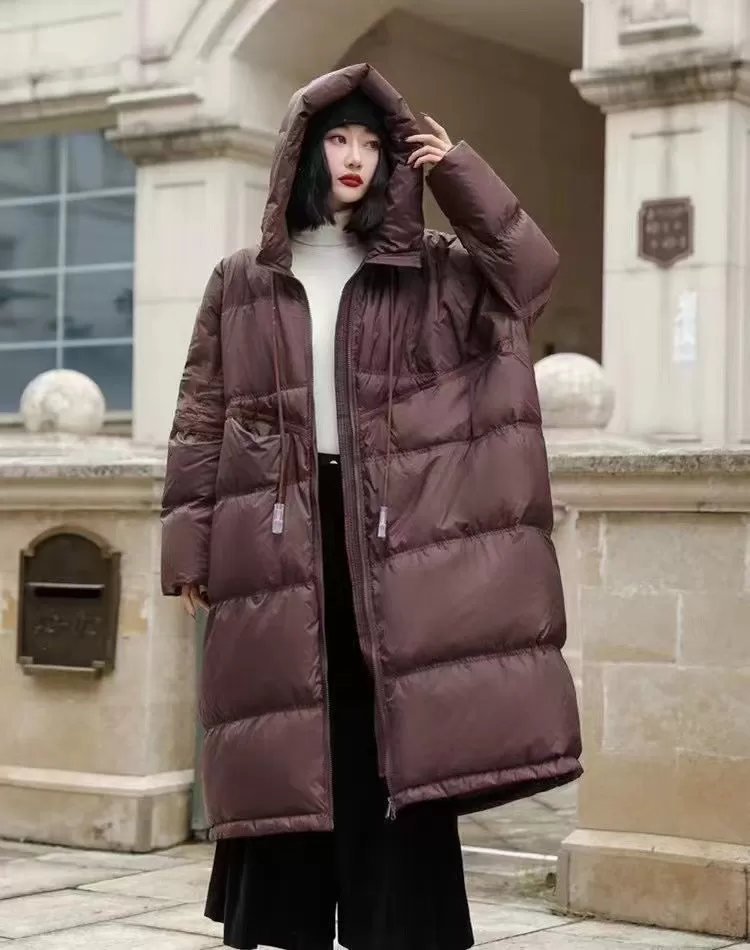 Autumn And Winter Warm Thick Hooded Mid-length White Duck Down Jacket Women Autumn And Winter Warm Thick Hooded Mid-length White Duck Down Jacket Women