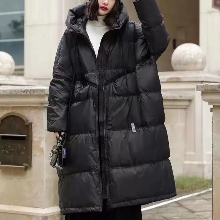Autumn And Winter Warm Thick Hooded Mid-length White Duck Down Jacket Women