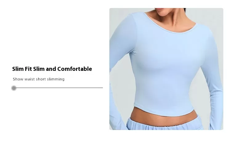 Autumn New Large U Back Yoga Clothes Long Sleeve Women’s Short Sports Top