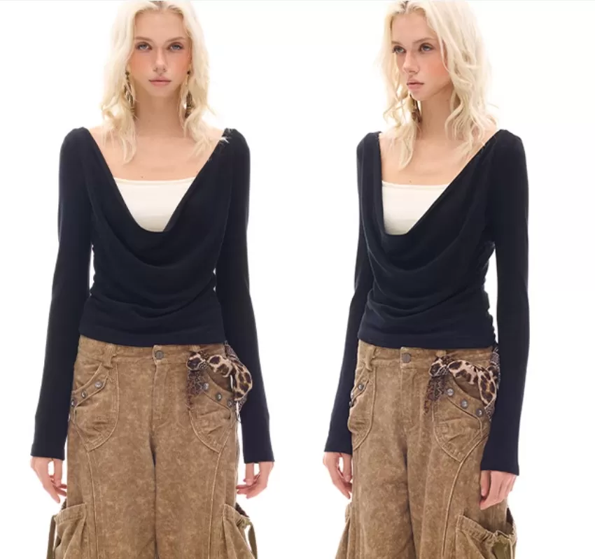 Beaded Swing Collar Knitted Top With Chest Pad Beaded Swing Collar Knitted Top With Chest Pad