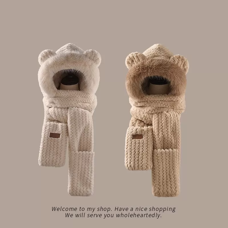 Bear Ears Plush Hat And Scarf For Women Bear Ears Plush Hat And Scarf For Women