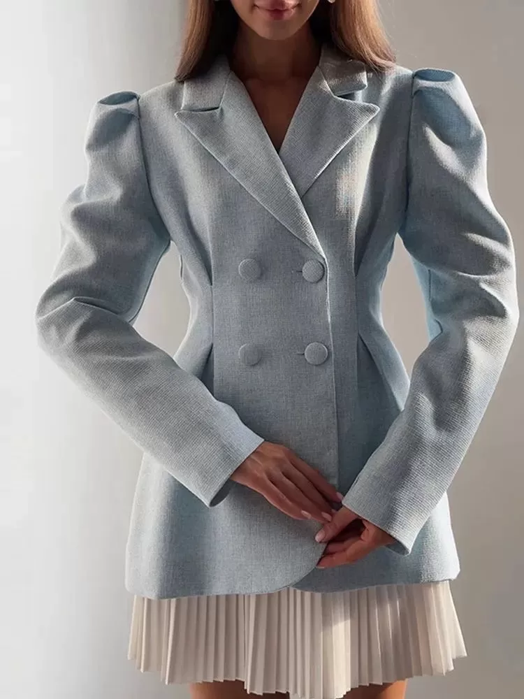 Breasted Puff Sleeve Suit Jacket And Skirt Suit