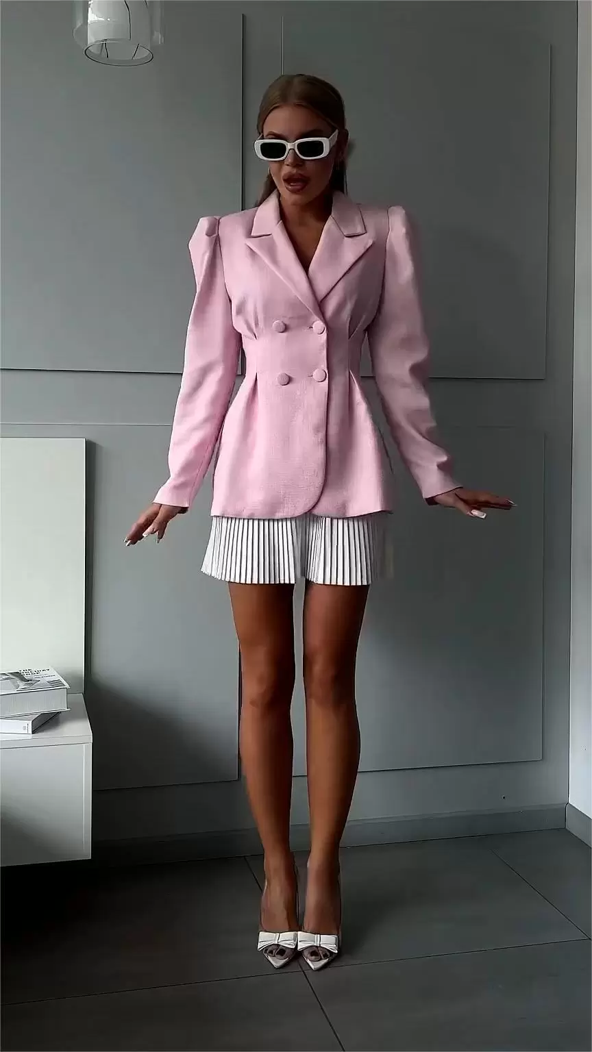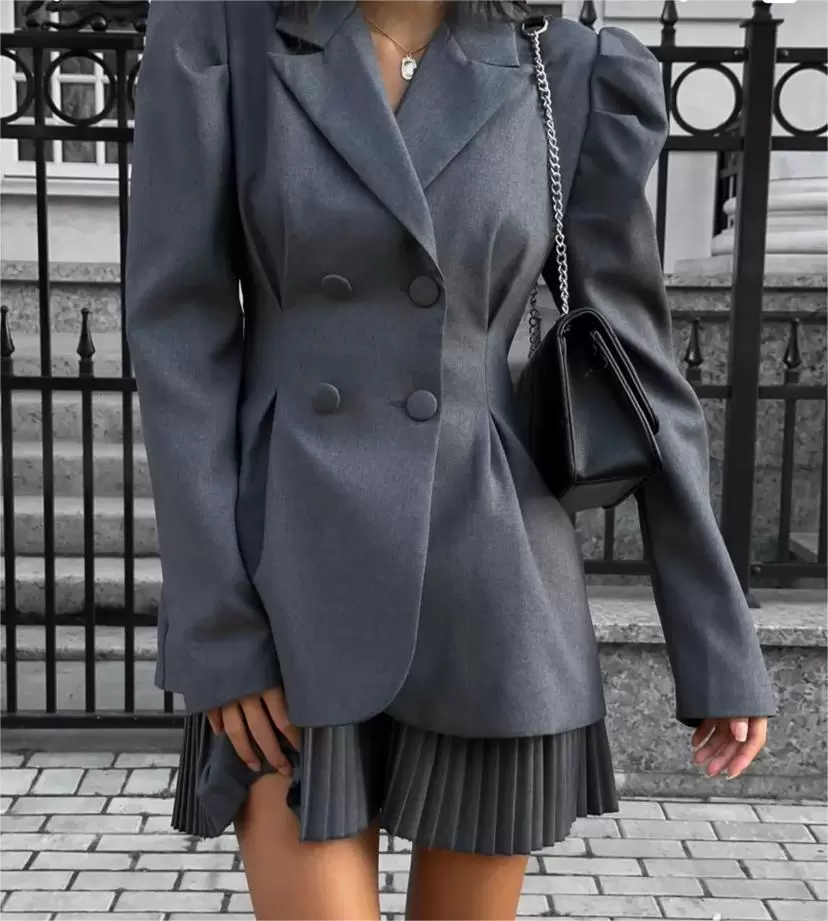 Breasted Puff Sleeve Suit Jacket And Skirt Suit Breasted Puff Sleeve Suit Jacket And Skirt Suit