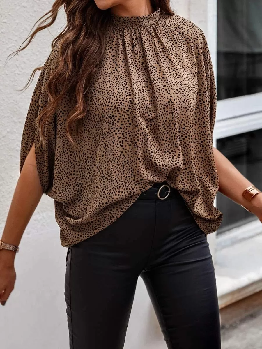 Casual Fashion Printing Split Batwing Sleeve Top Casual Fashion Printing Split Batwing Sleeve Top
