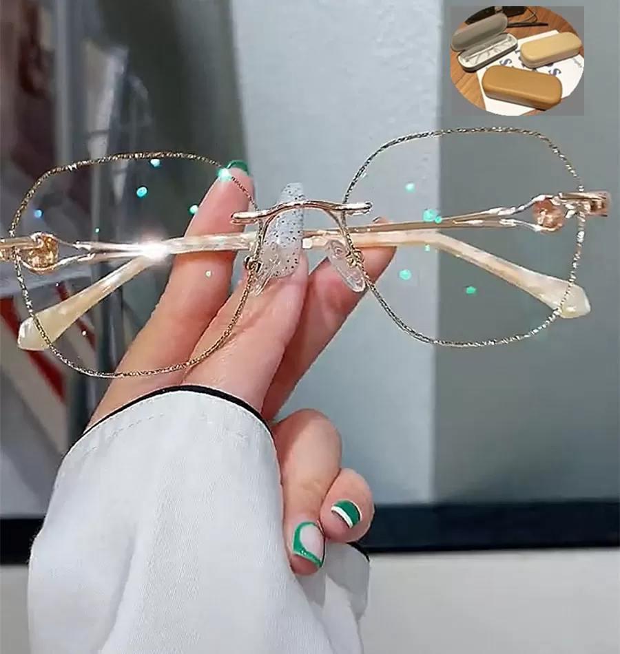 Champagne Gold Frameless Polygon Anti-blue Light Women’s Reading Glasses
