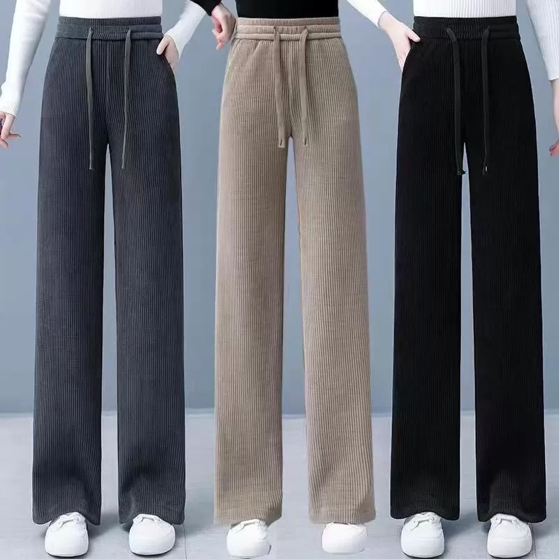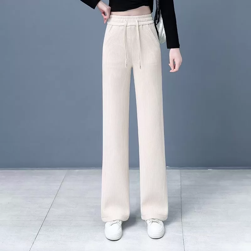 Chenille Wide-leg Pants Women’s High Waist Loose Straight Trousers