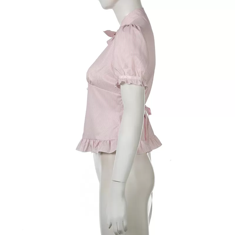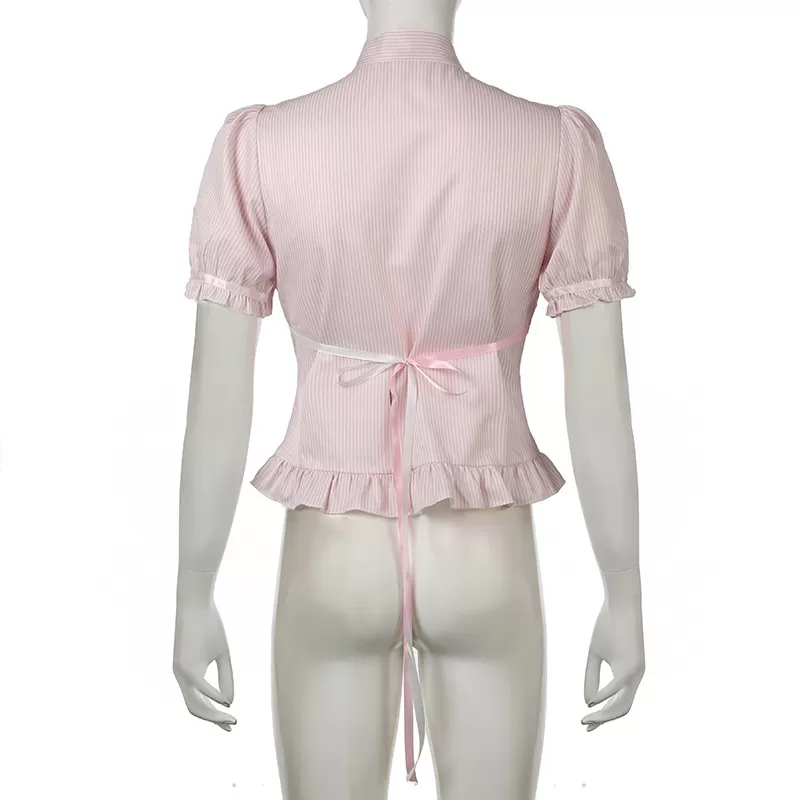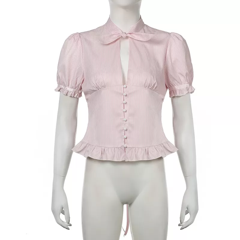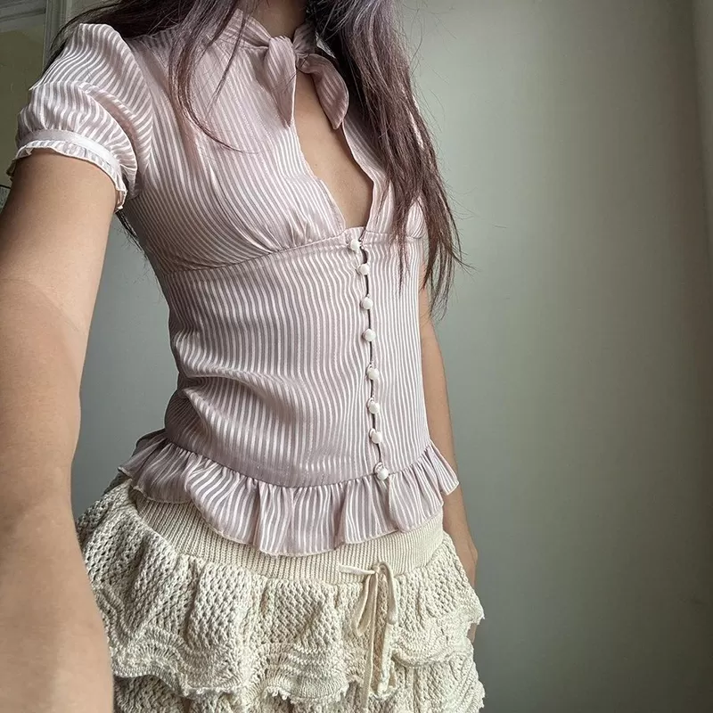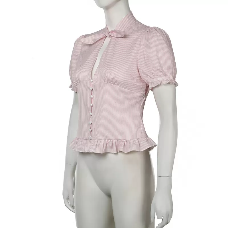 Chest-flattering Button Flounce Short Sleeve Chest-flattering Button Flounce Short Sleeve