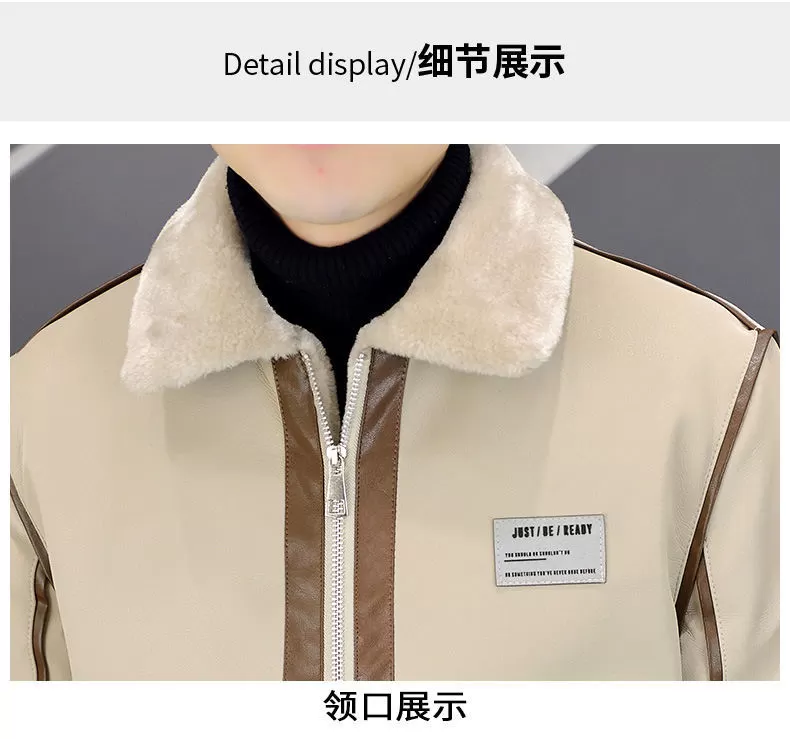 Coat Men’s Warm With Velvet Thickened Suede Leather Coat Cotton-padded Coat Fur Integrated