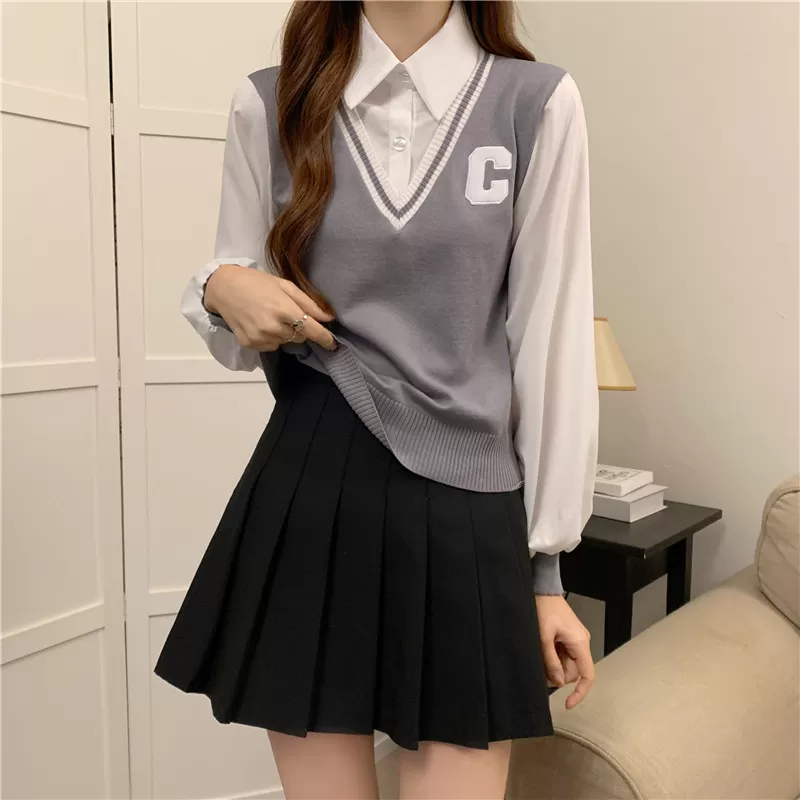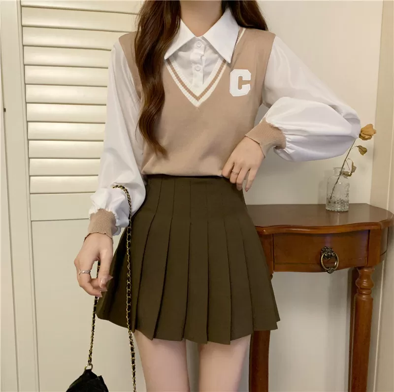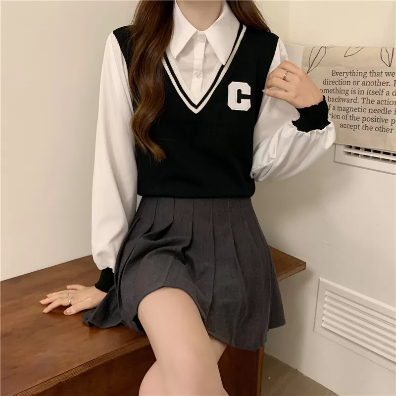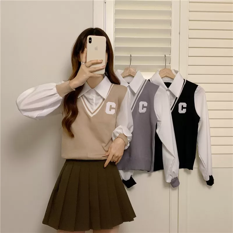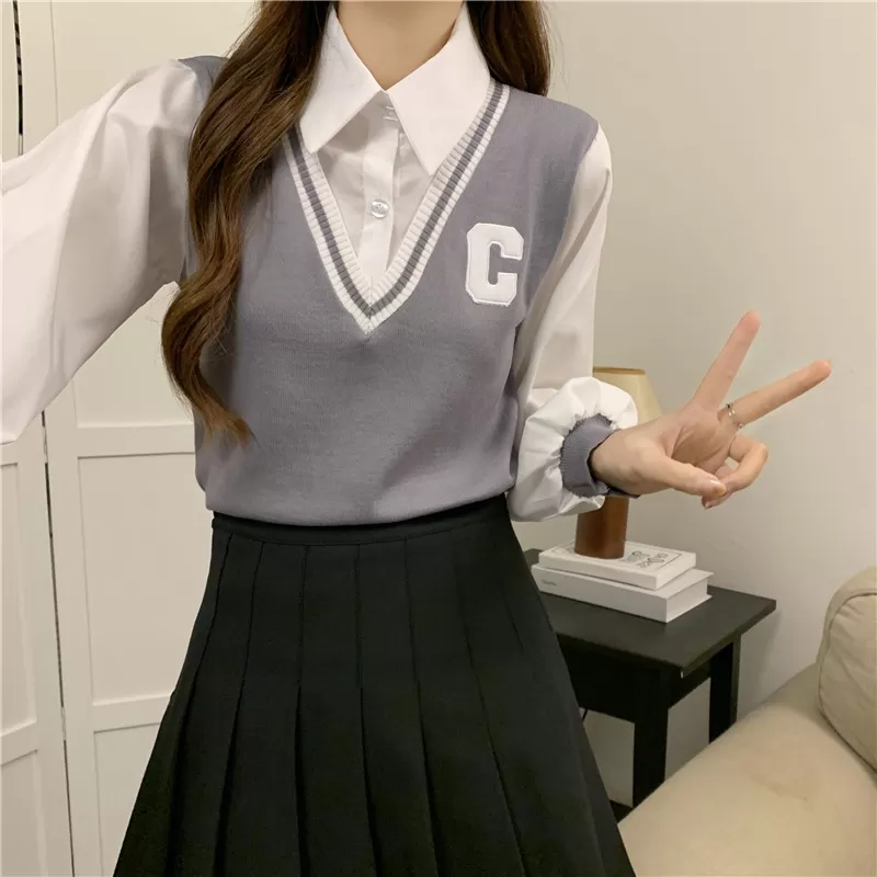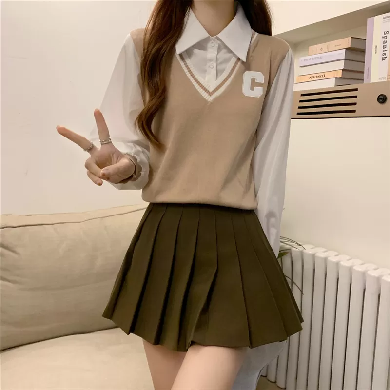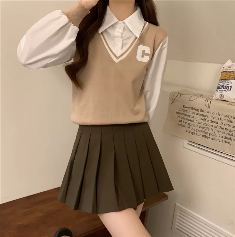 College Style Vest Autumn Outer Wear Knitted Sweater For Women