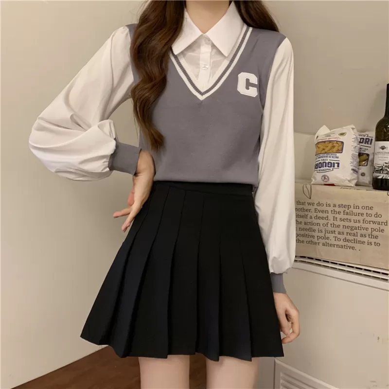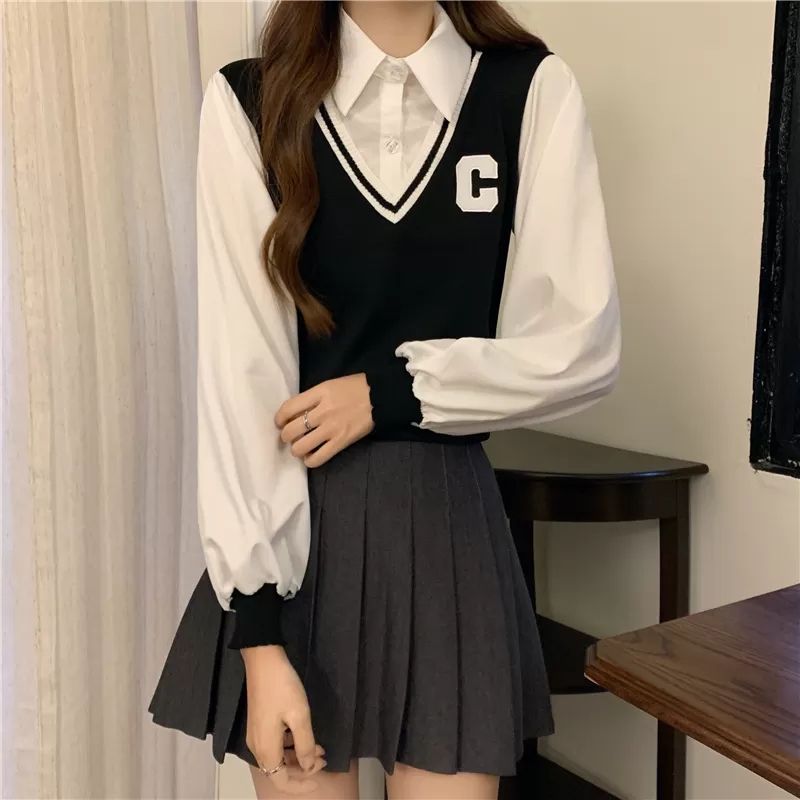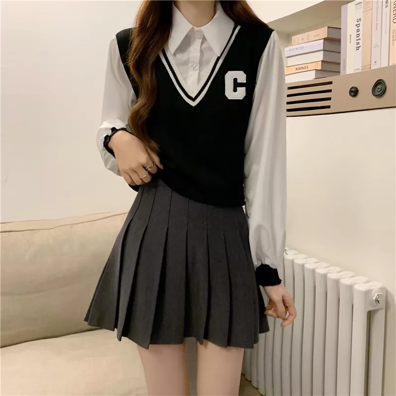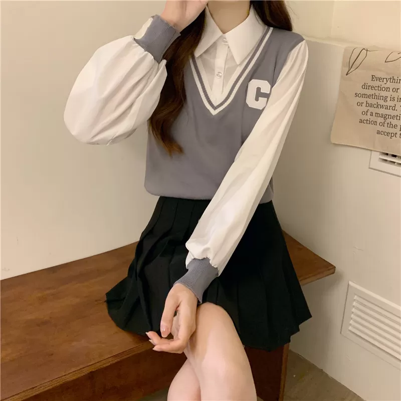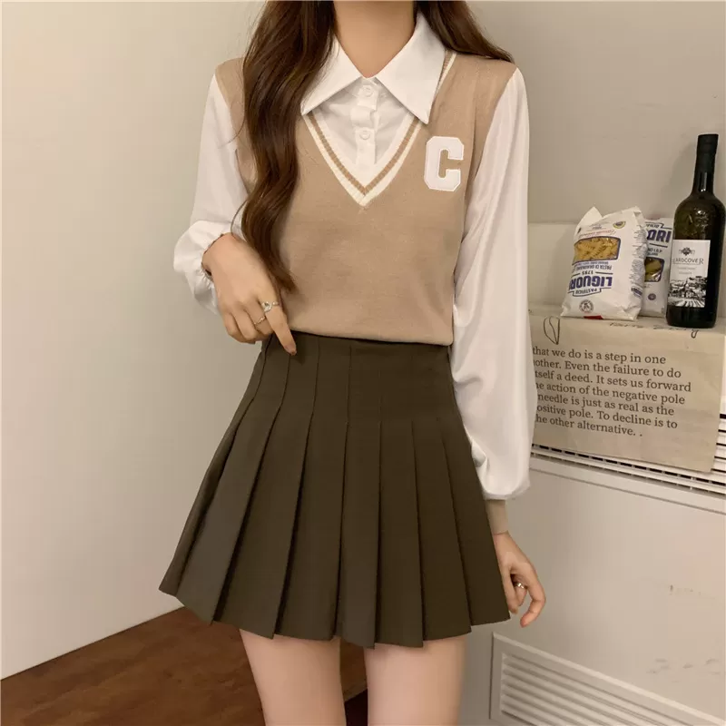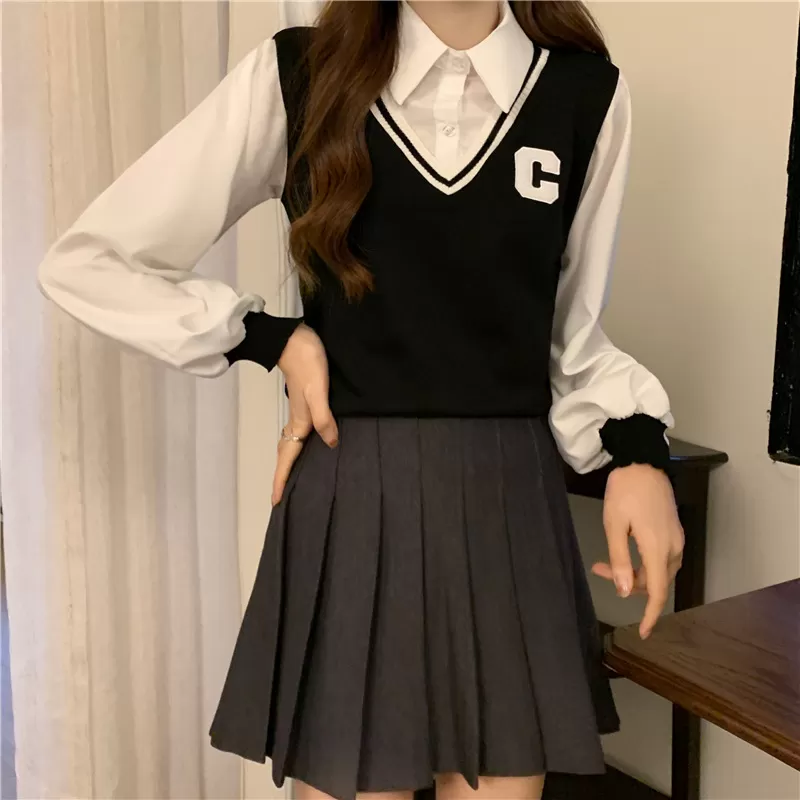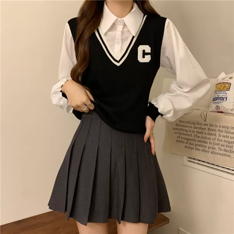 College Style Vest Autumn Outer Wear Knitted Sweater For Women