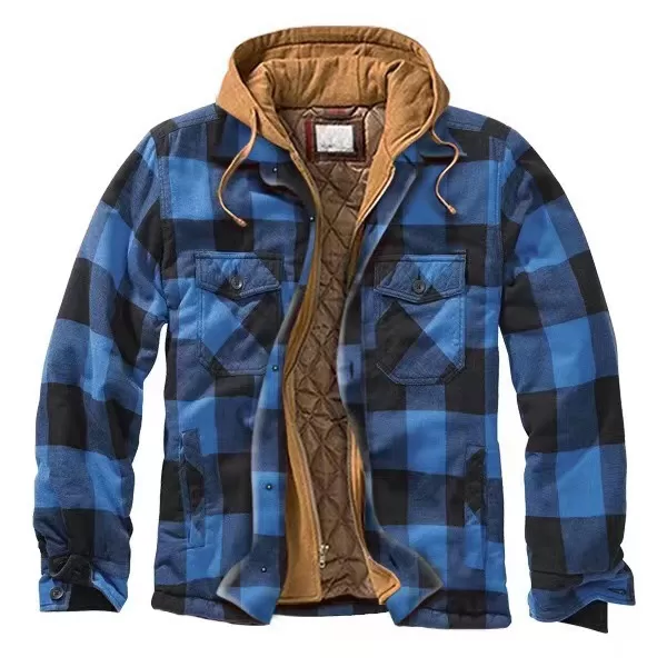 Cotton Men’s Plaid Striped Loose Hooded Long-sleeved Coat Jacket