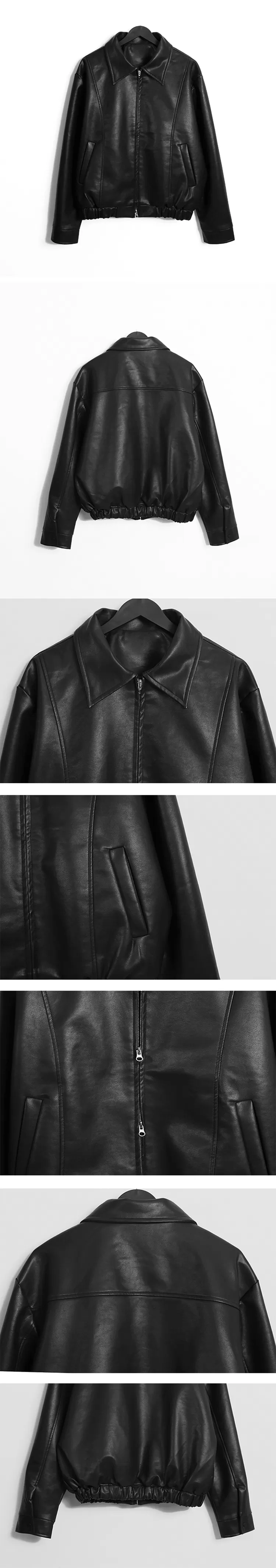 Cropped Leather Coat Male Polo Collar Top Cropped Leather Coat Male Polo Collar Top