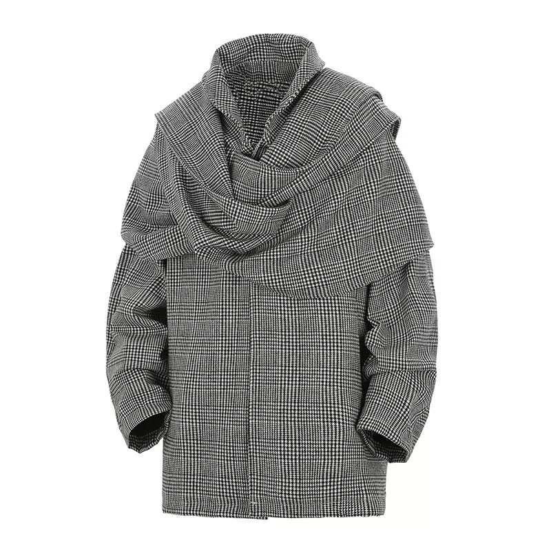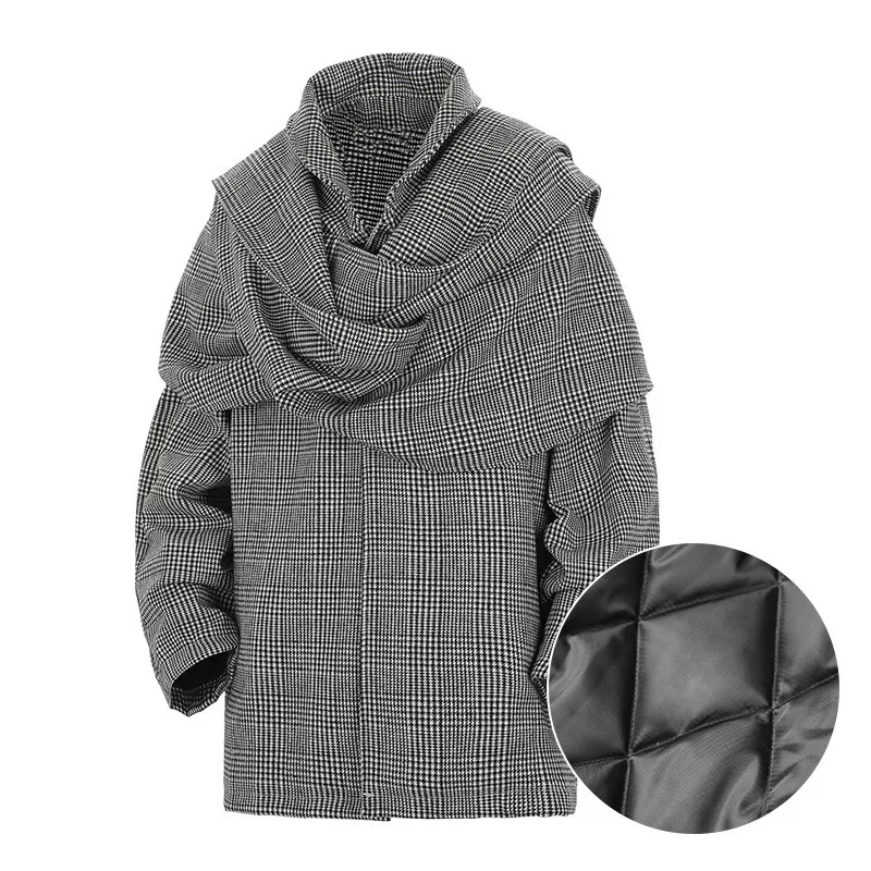 Double-shoulder Scarf Woolen Coat Men’s Loose Casual Houndstooth Top Fashion