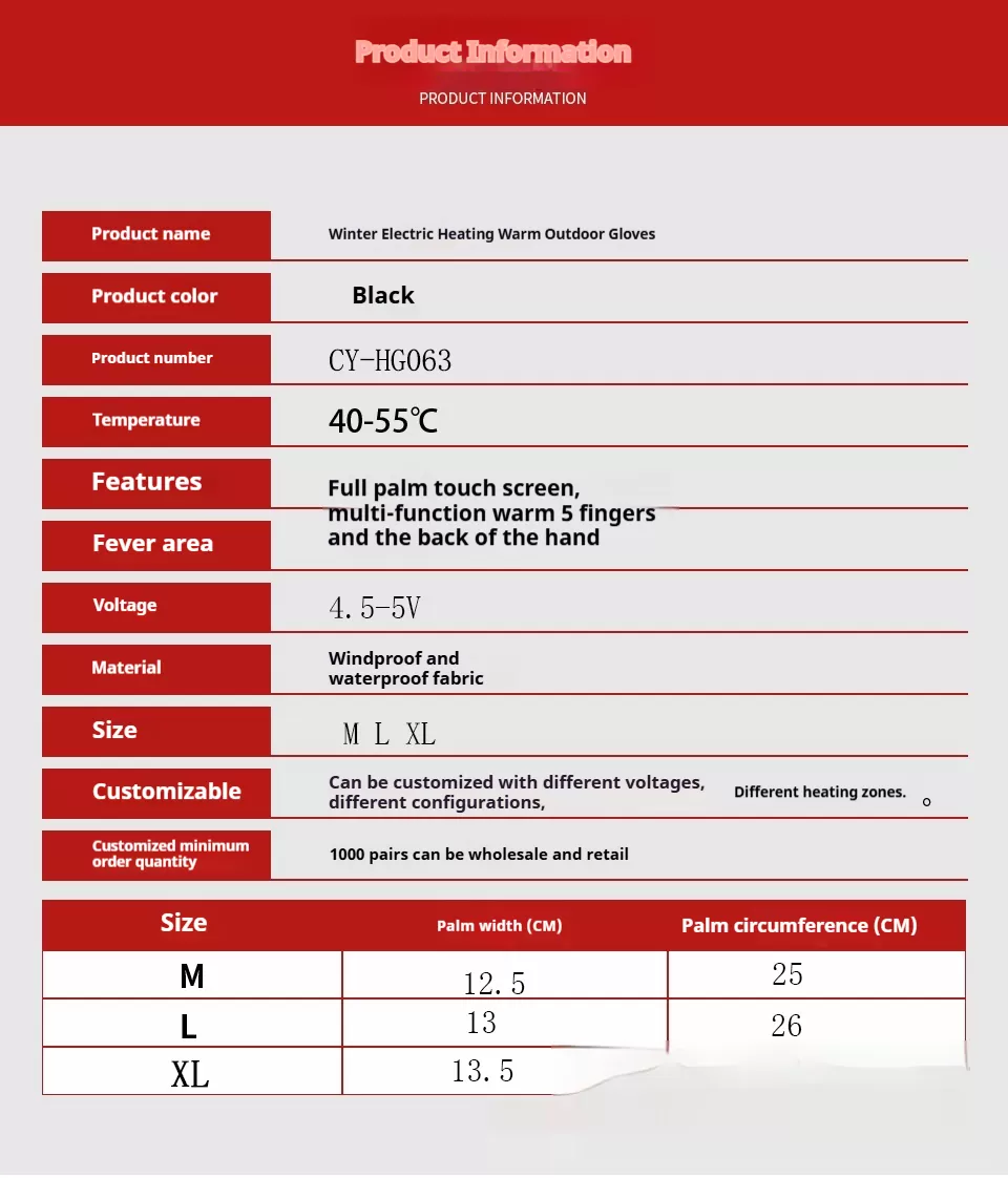 Electric Heating Gloves Lithium Battery Three-gear Temperature Control Warm