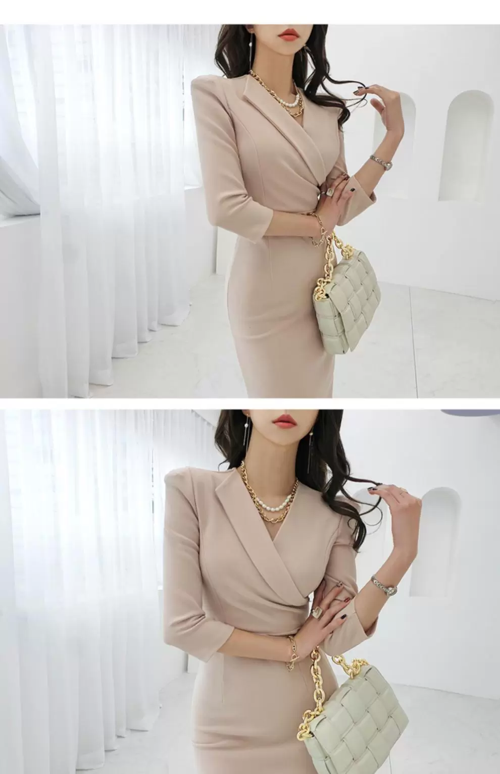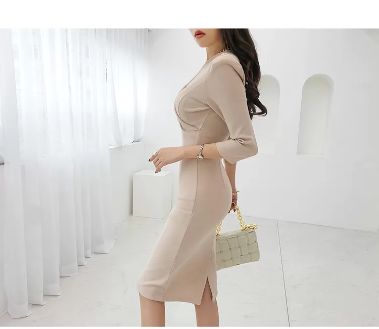 Elegant Slim-fit Mid-length Elastic Hip Business Dress