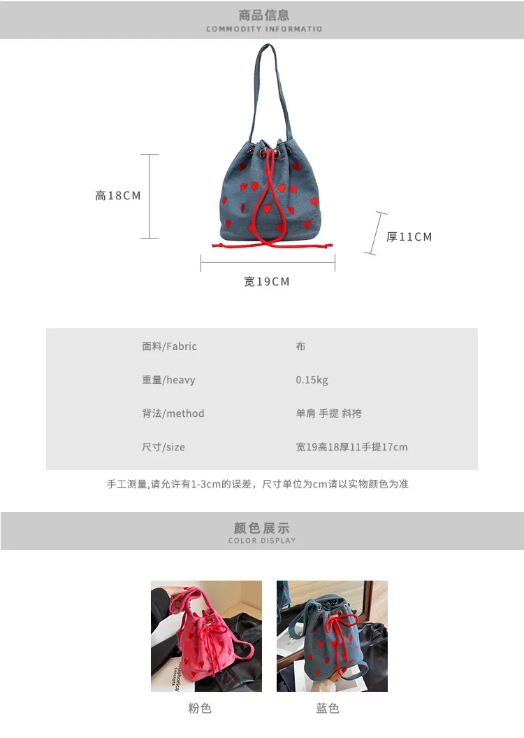 Embroidery Love Pull-belt Shoulder Messenger Textured Mini Bucket Bag Embroidery Love Pull-belt Shoulder Messenger Textured Mini Bucket Bag