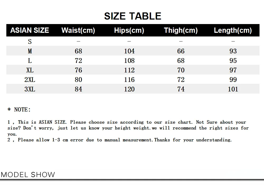 1. Asian sizes are 1 to 2 sizes smaller than European and American people. Choose the larger size if your size between two sizes. Please allow 2-3cm differences due to manual measurement.