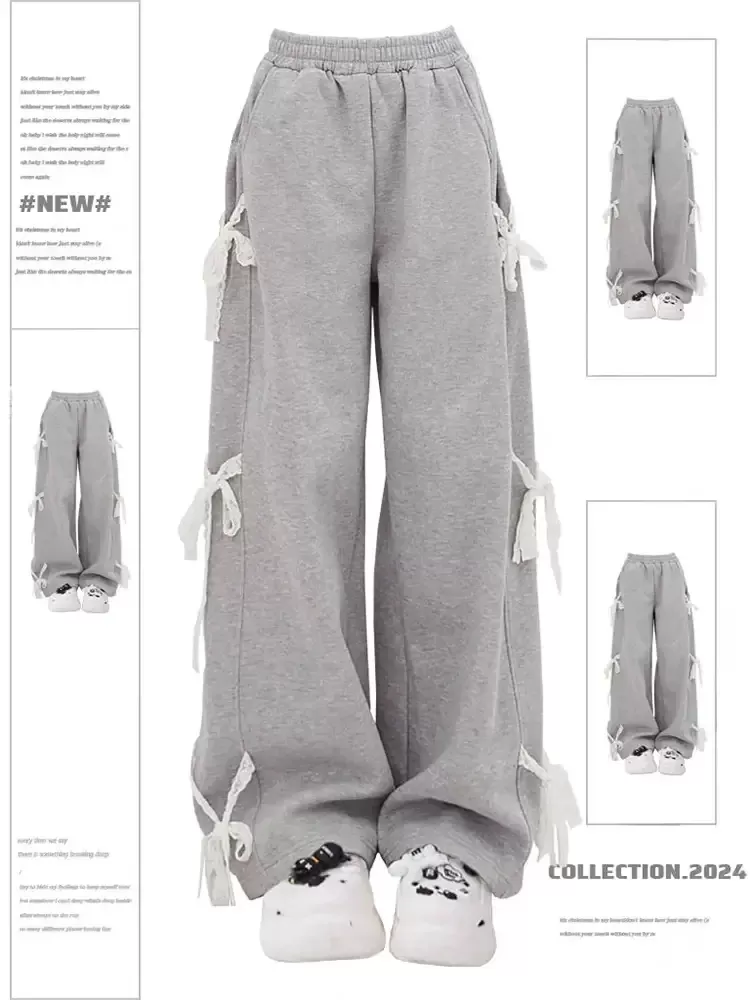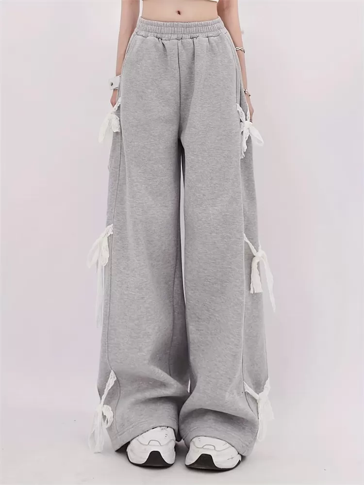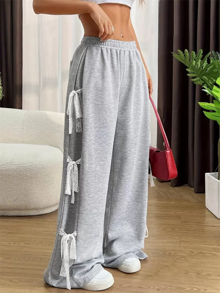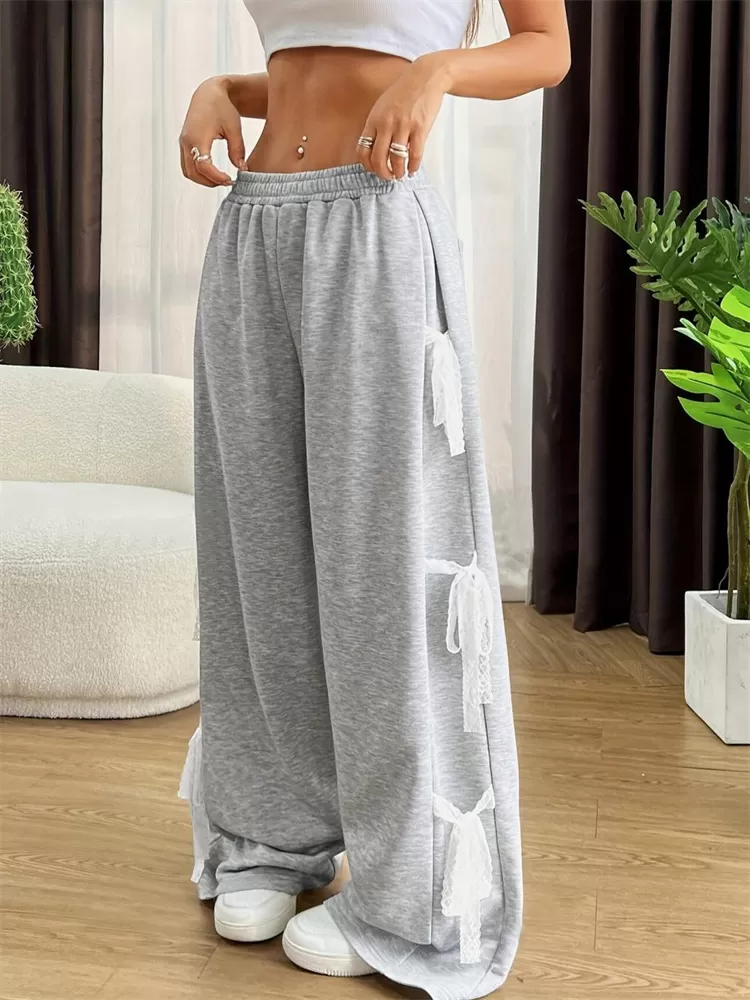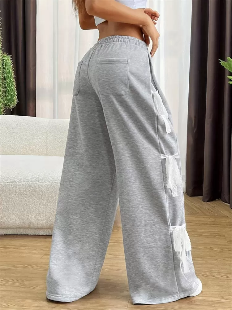 European And American Fashion Street Fashion Bow Lace Stitching Personality Wide Leg Pants European And American Fashion Street Fashion Bow Lace Stitching Personality Wide Leg Pants