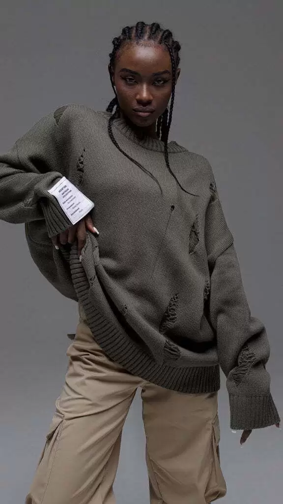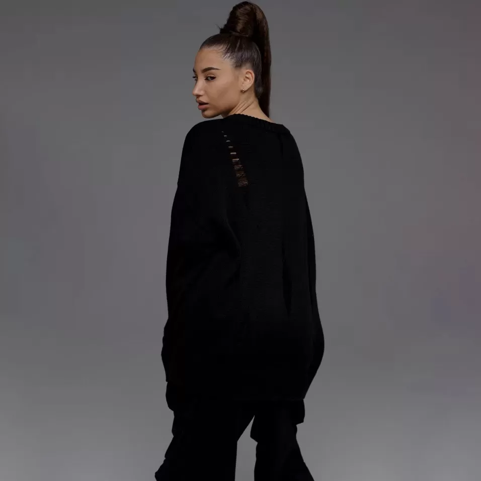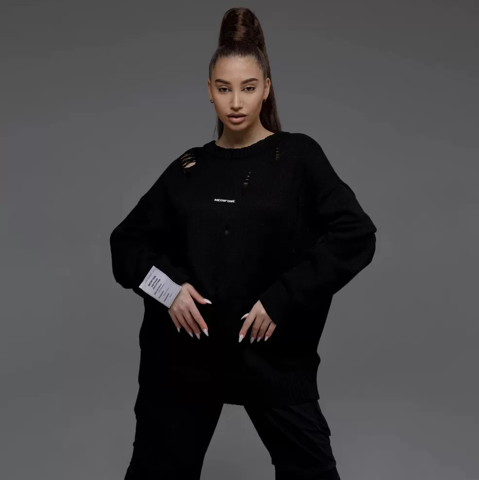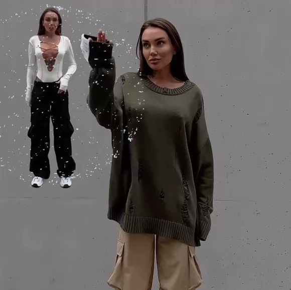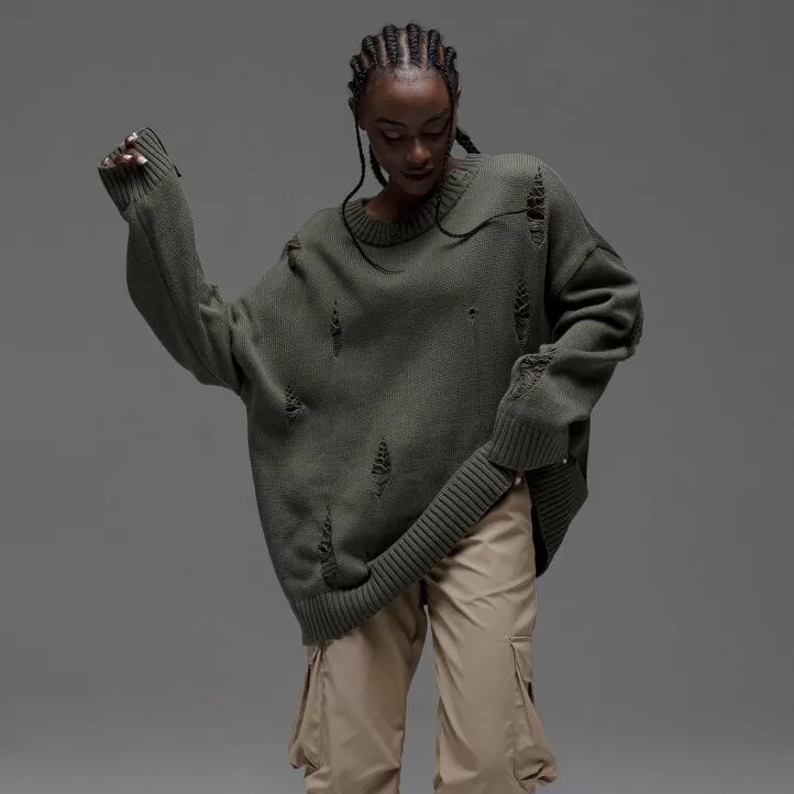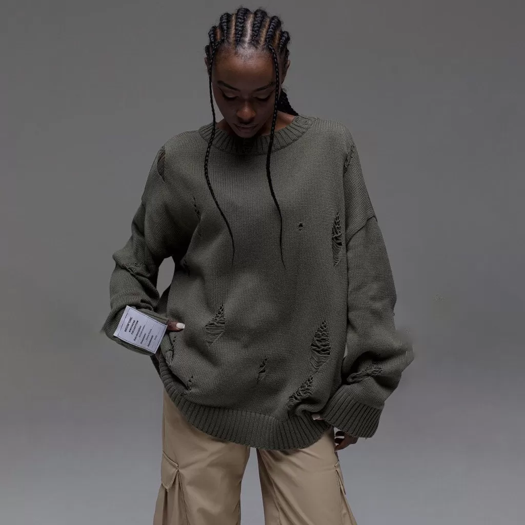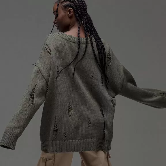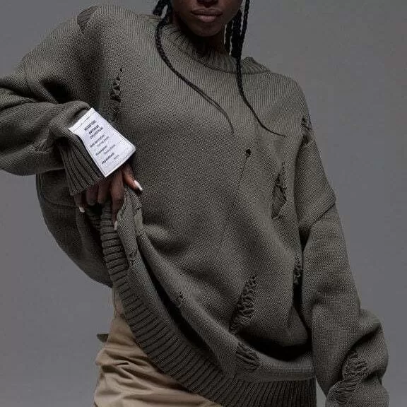 European And American Leisure Ripped Round Neck Sweater For Women Autumn And Winter European And American Leisure Ripped Round Neck Sweater For Women Autumn And Winter
