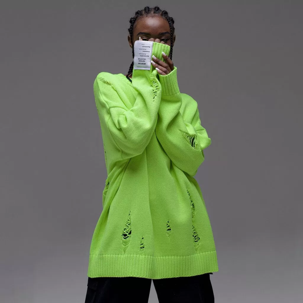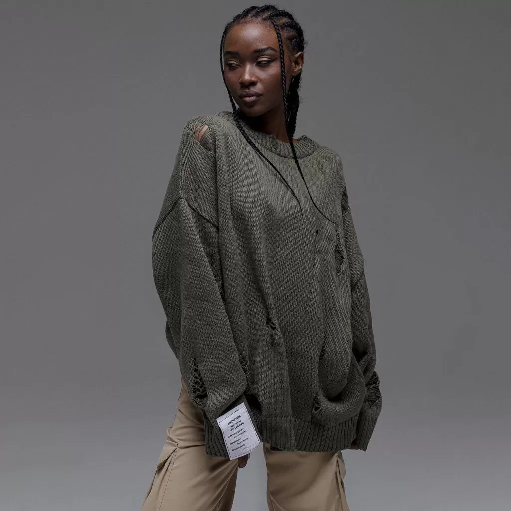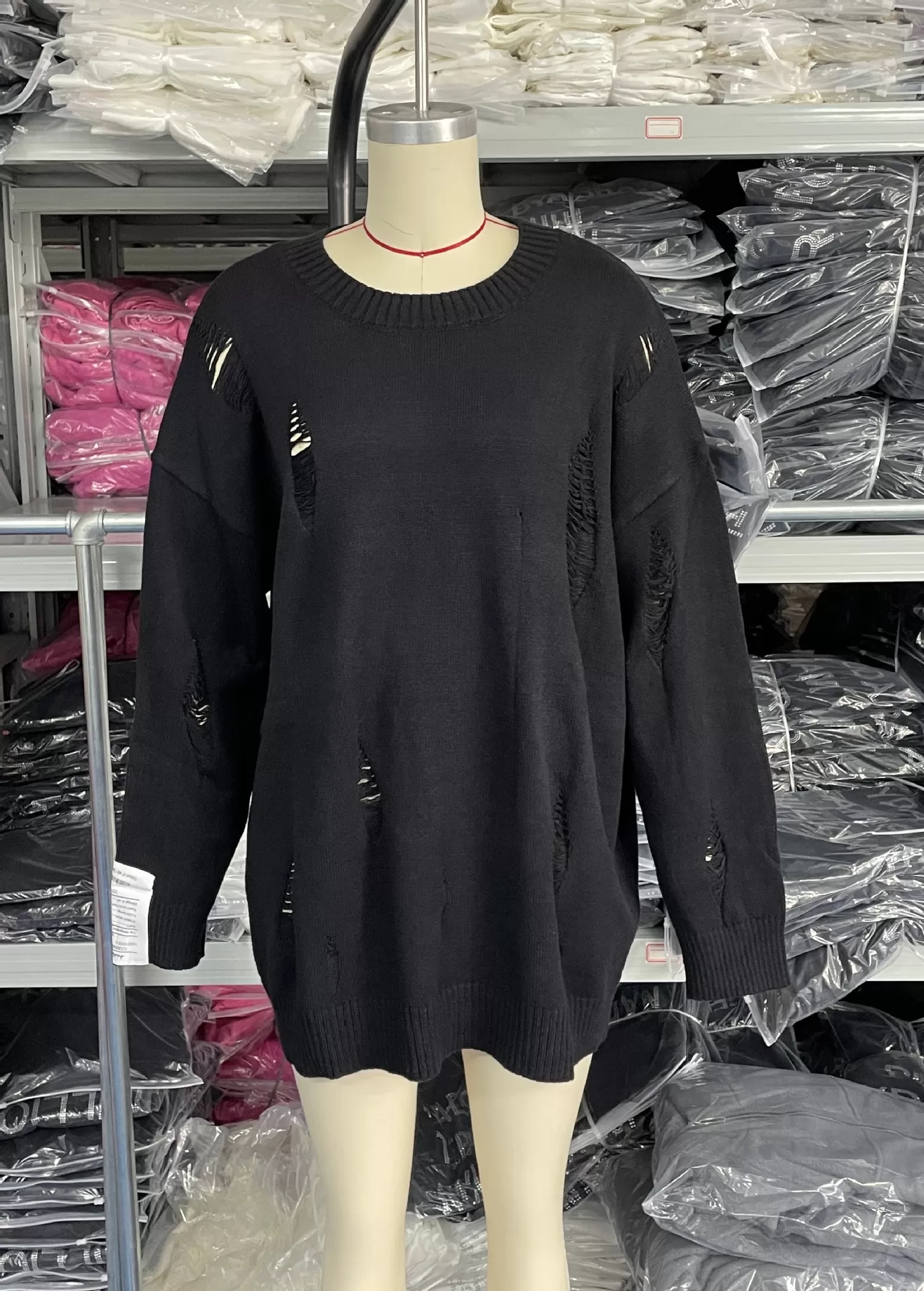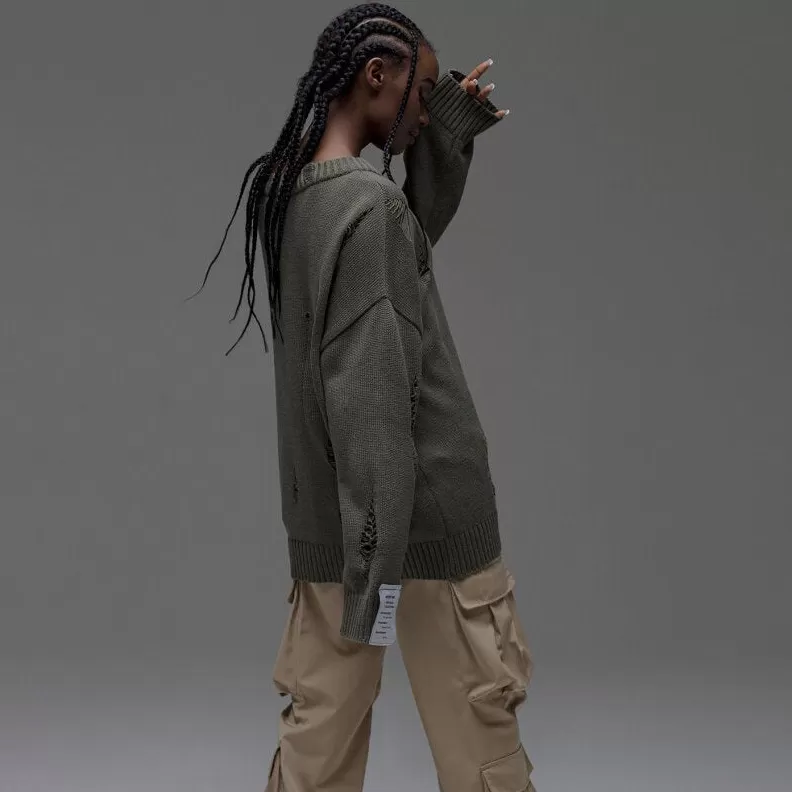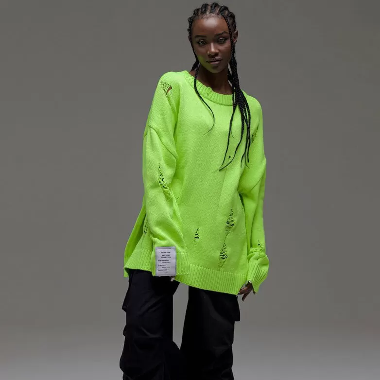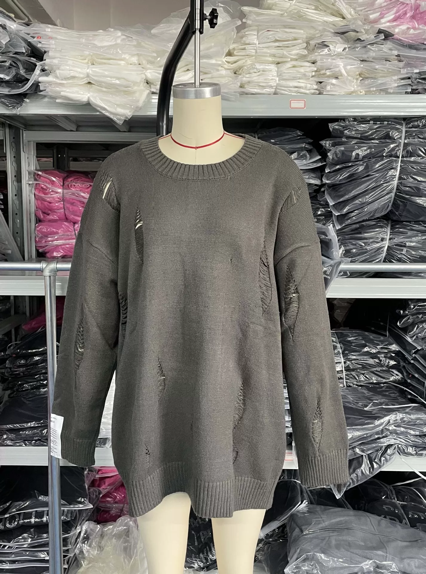 European And American Leisure Ripped Round Neck Sweater For Women Autumn And Winter European And American Leisure Ripped Round Neck Sweater For Women Autumn And Winter