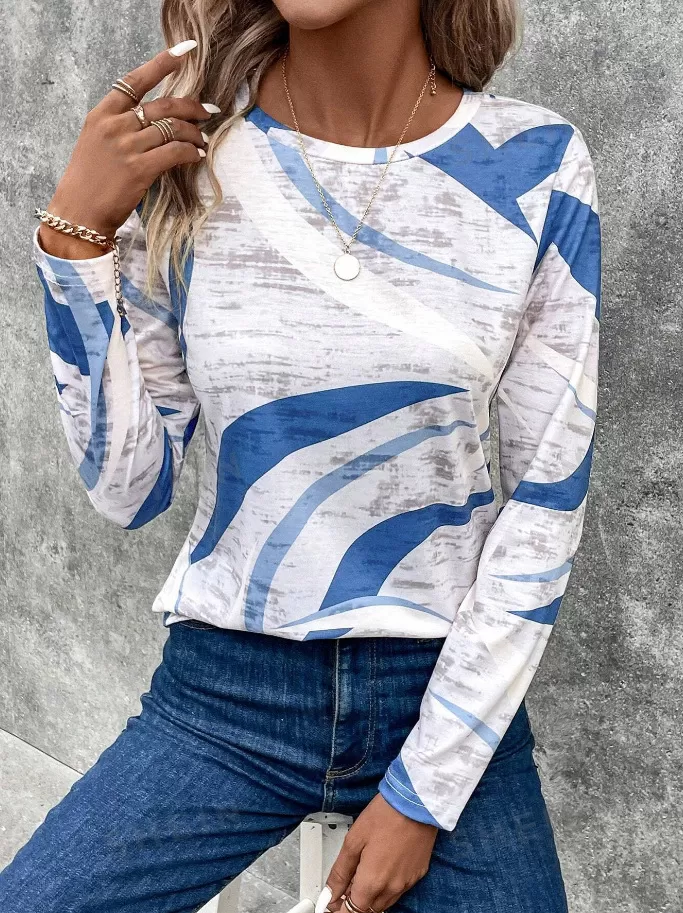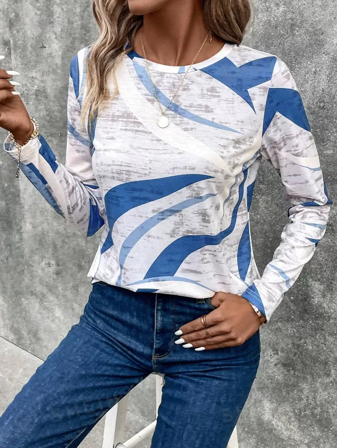 European And American Printed Round Neck Slim Bottoming Shirt European And American Printed Round Neck Slim Bottoming Shirt