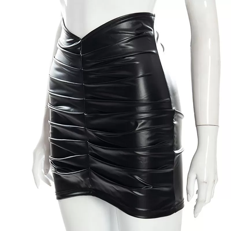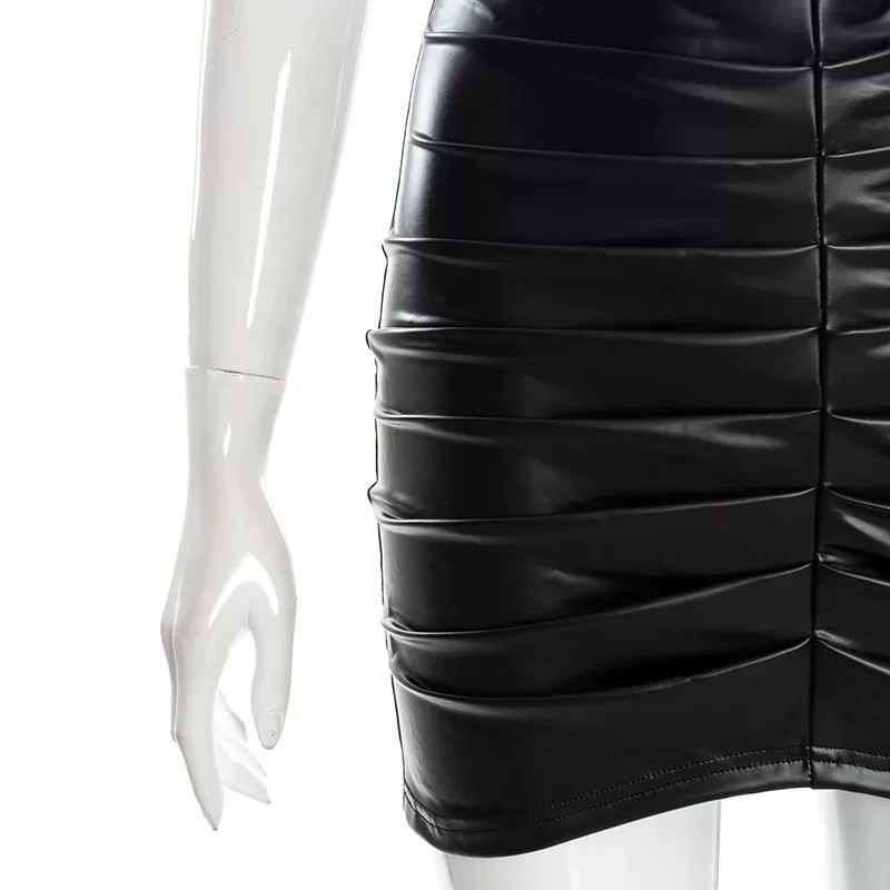 European And American Style Fashion Temperament Pure Color Pleated PU Sheath Skirt European And American Style Fashion Temperament Pure Color Pleated PU Sheath Skirt