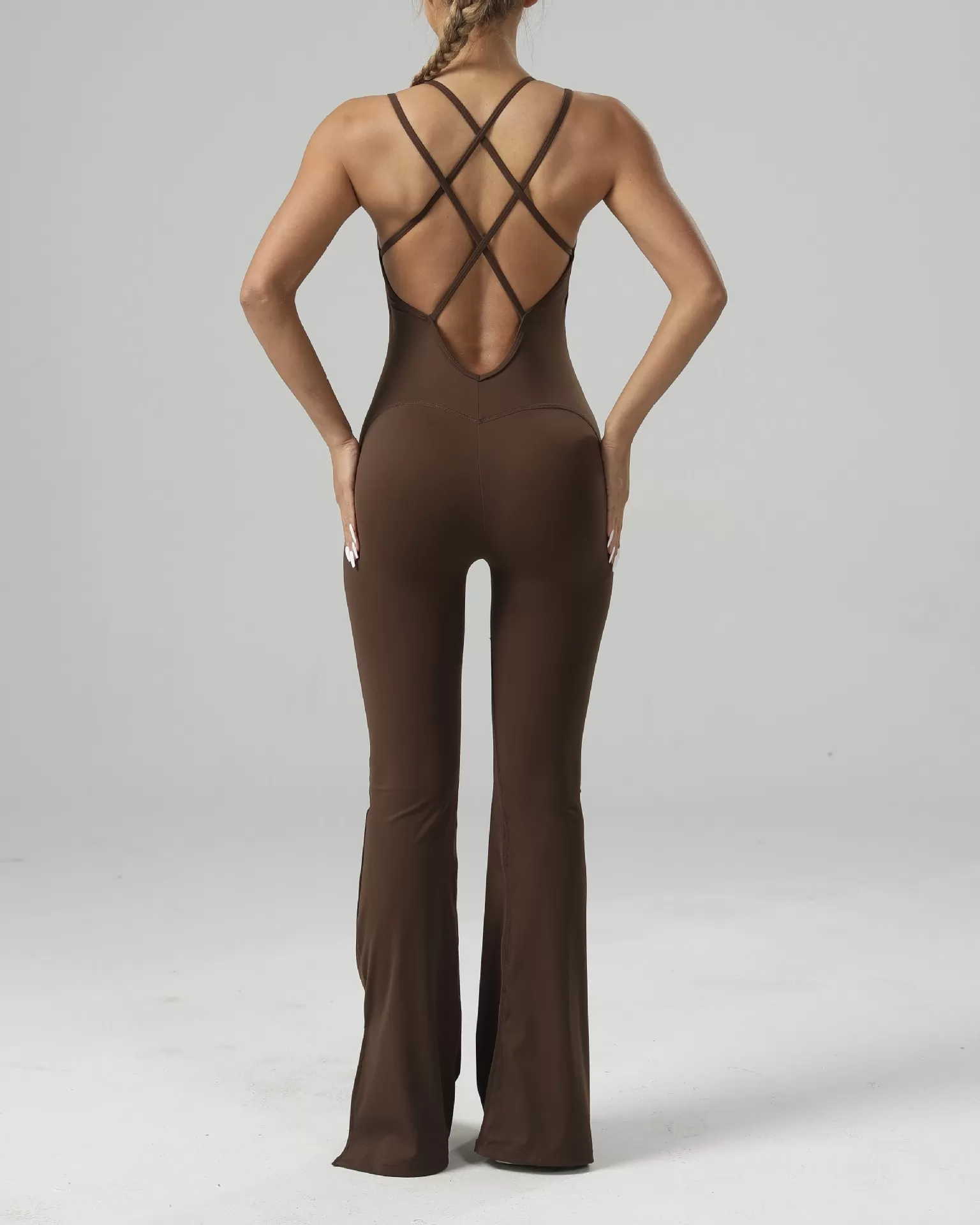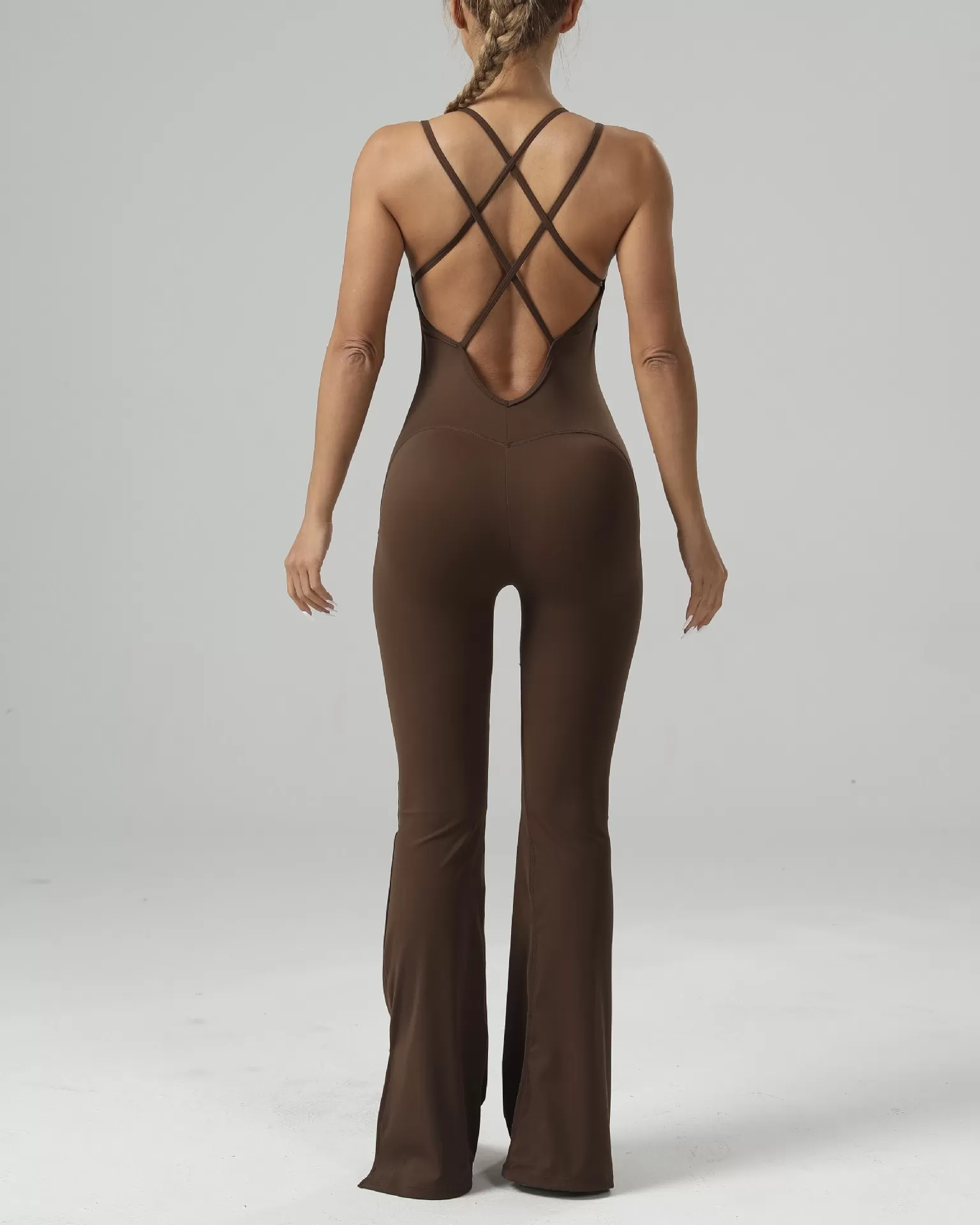 European And American Tight Yoga Jumpsuit Women's Cross Beauty Back Casual