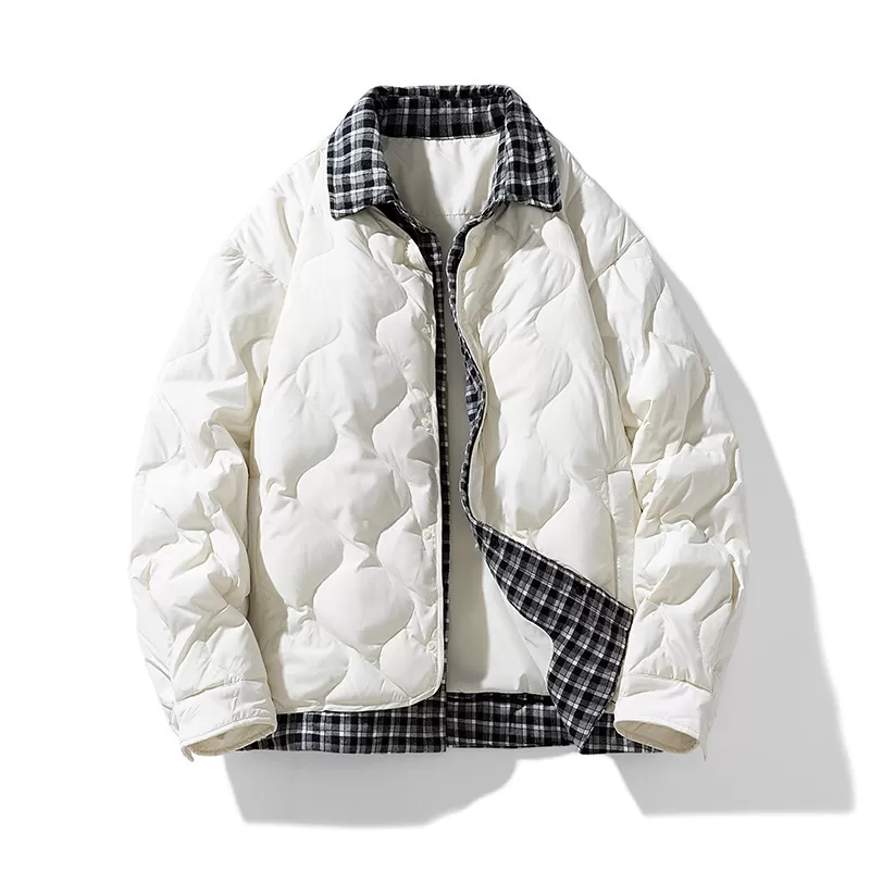 Fake Two-piece Plaid Lapel Baseball Collar Shirt Down Jacket Fake Two-piece Plaid Lapel Baseball Collar Shirt Down Jacket