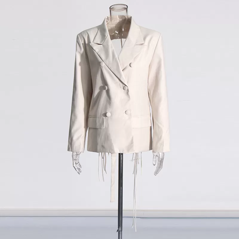 Fashion Double Breasted Solid Color New Hollow Out Coat