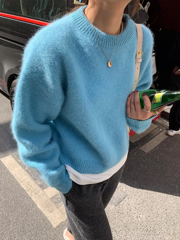 Fashion Retro Loose And Warm Solid Color Pullover Sweater Women Fashion Retro Loose And Warm Solid Color Pullover Sweater Women