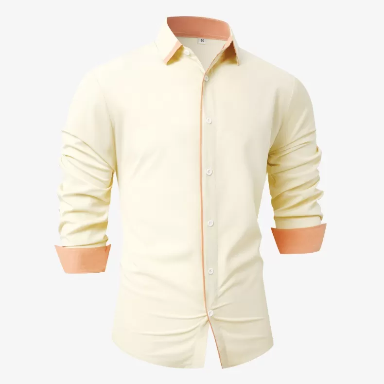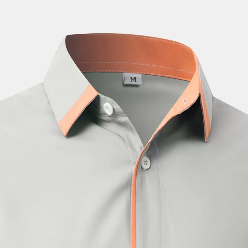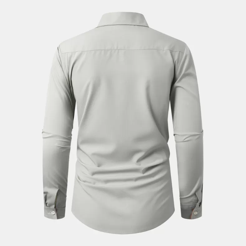 Fashion Solid Color Stitching Contrast Color Casual Long Sleeve Men’s Shirt