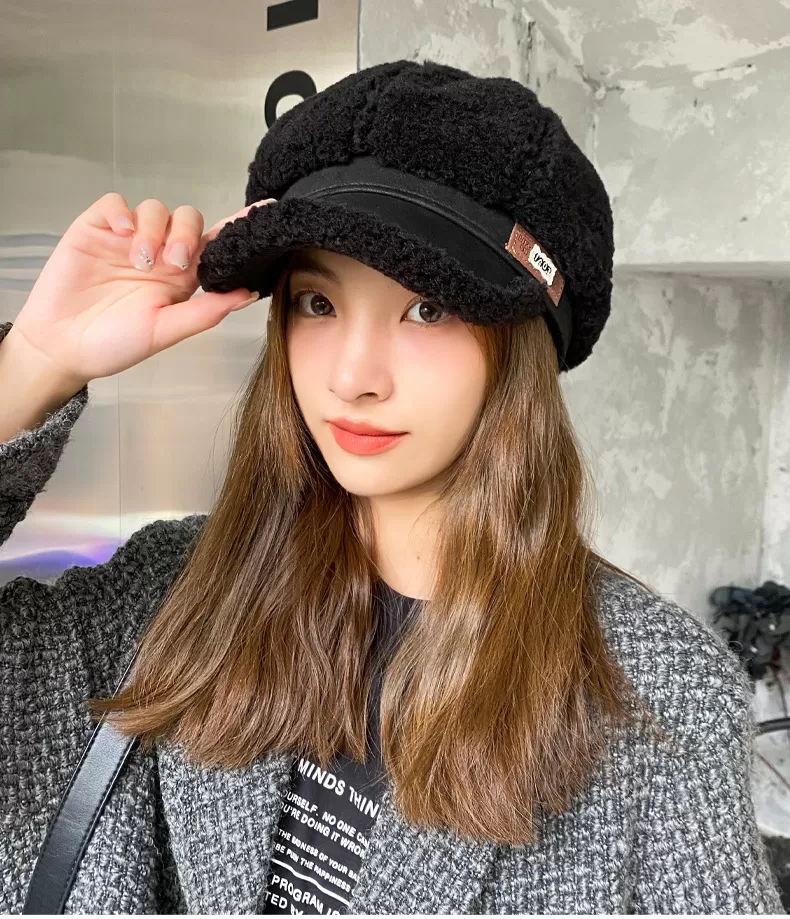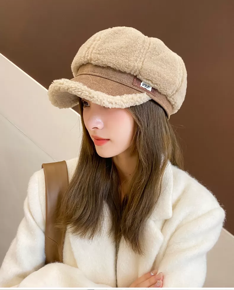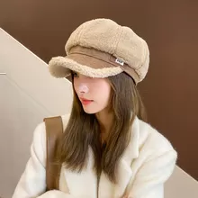 Faux Cashmere Fashion Leather Tag Octagonal Winter Warm Peaked Cap Faux Cashmere Fashion Leather Tag Octagonal Winter Warm Peaked Cap