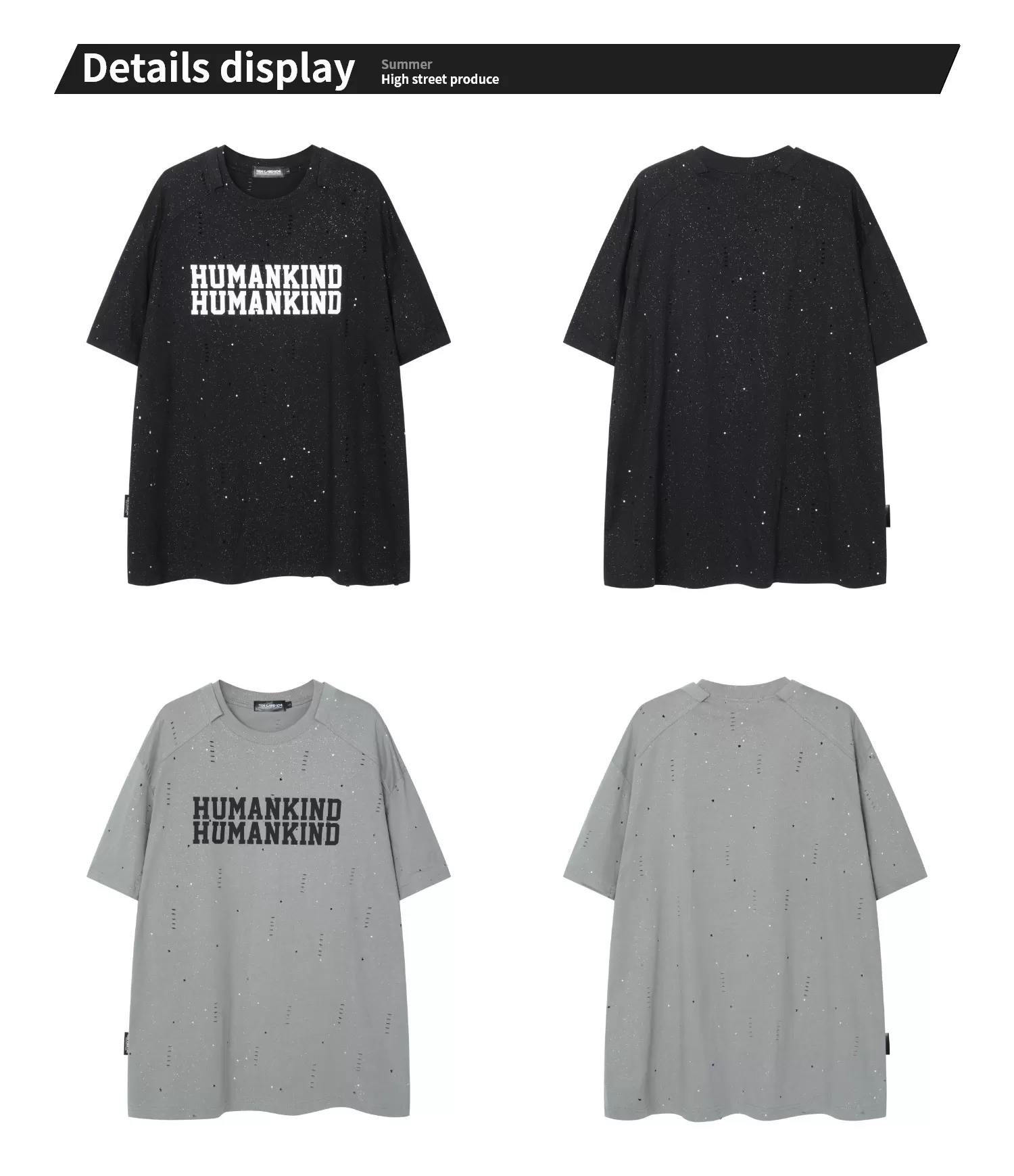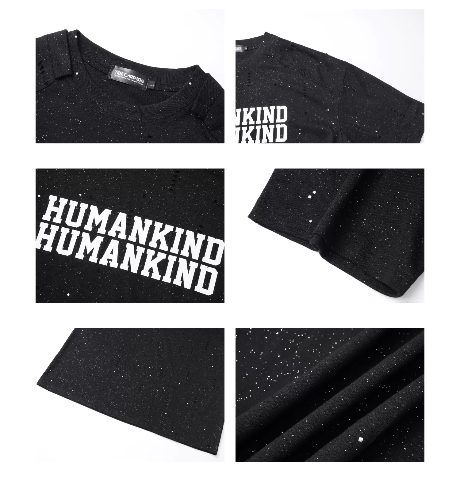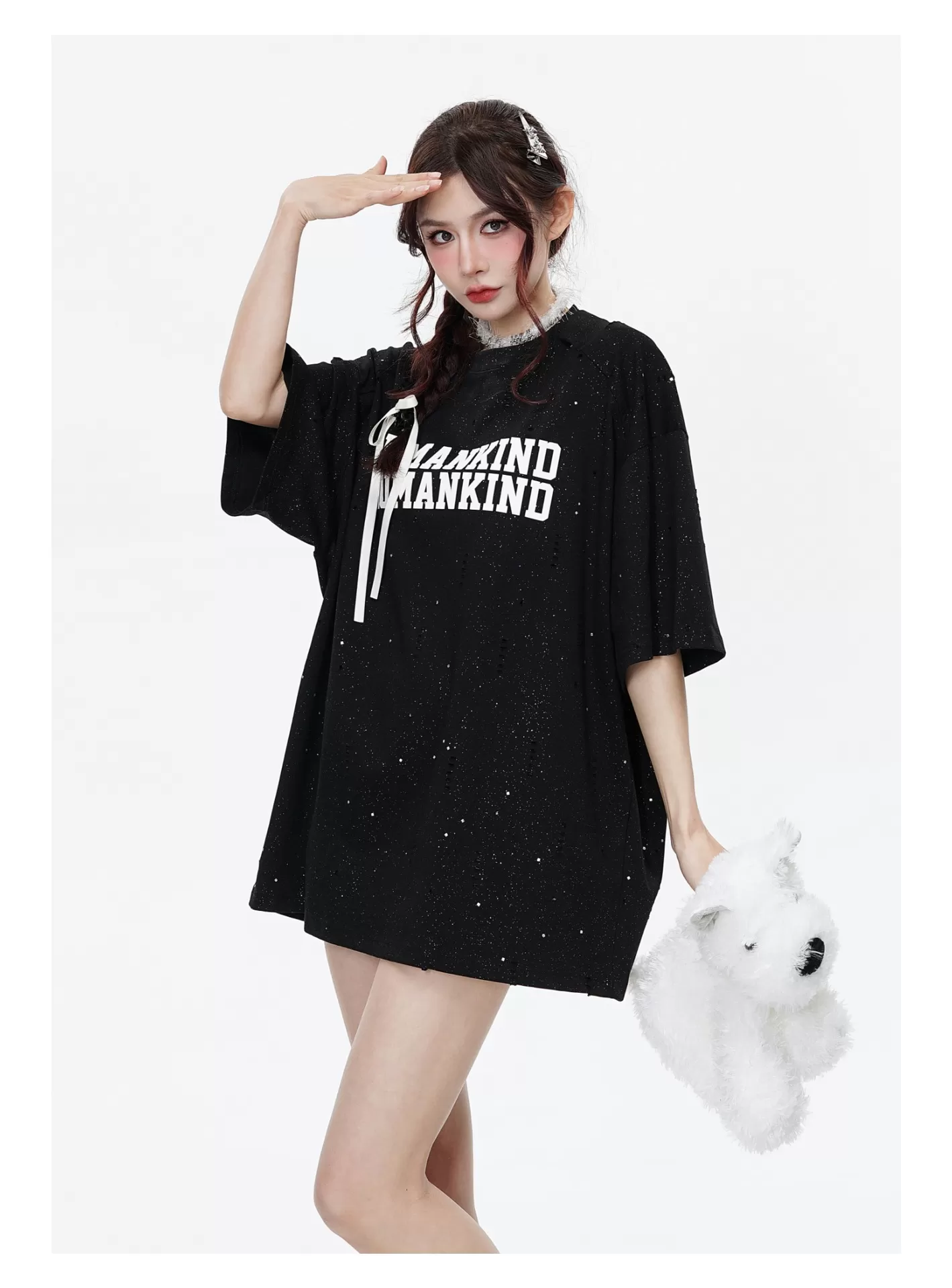 Featured Ripped Starry Double Layer Patchwork Round Neck Drop Shoulder Short Sleeve Featured Ripped Starry Double Layer Patchwork Round Neck Drop Shoulder Short Sleeve