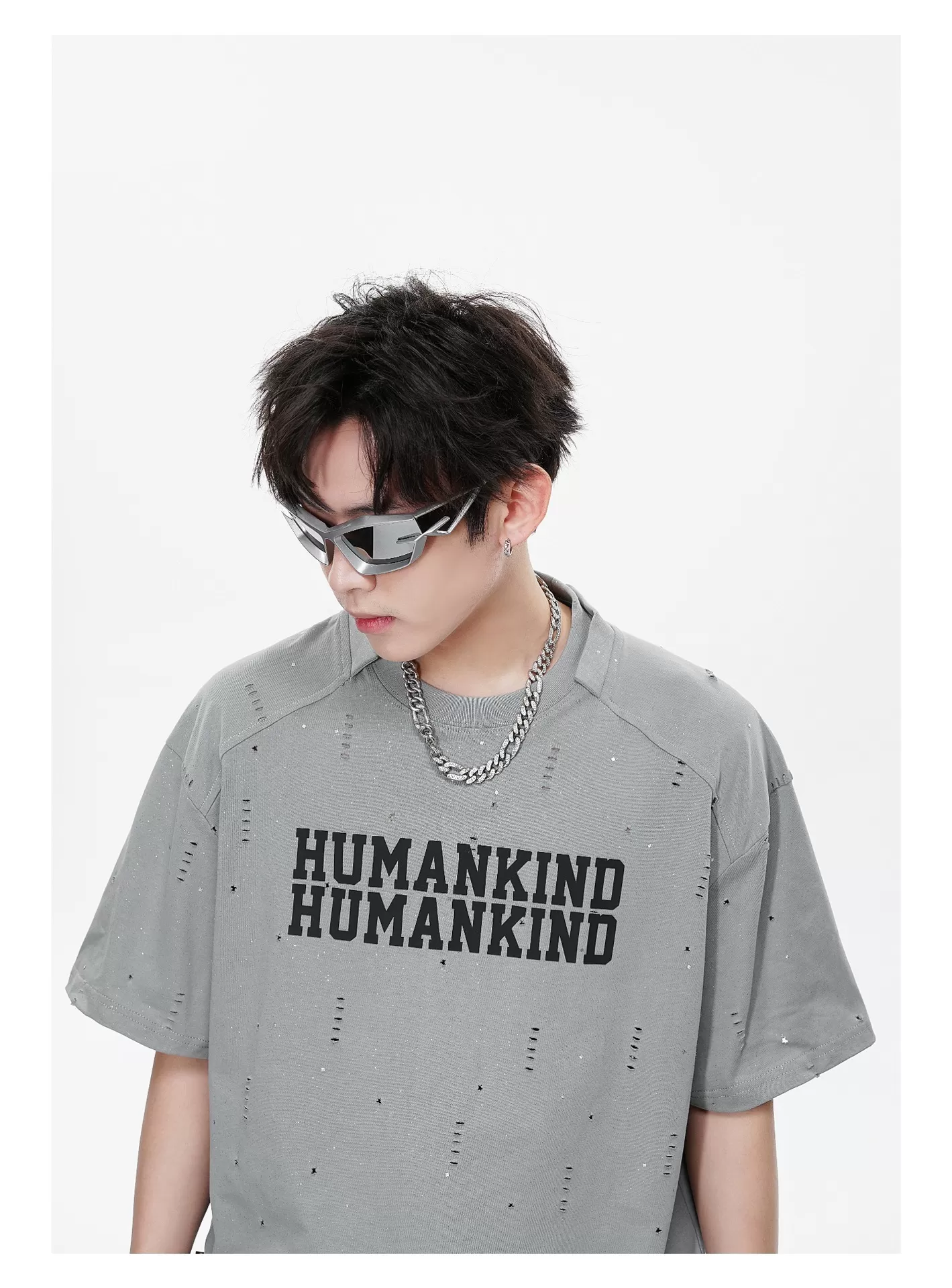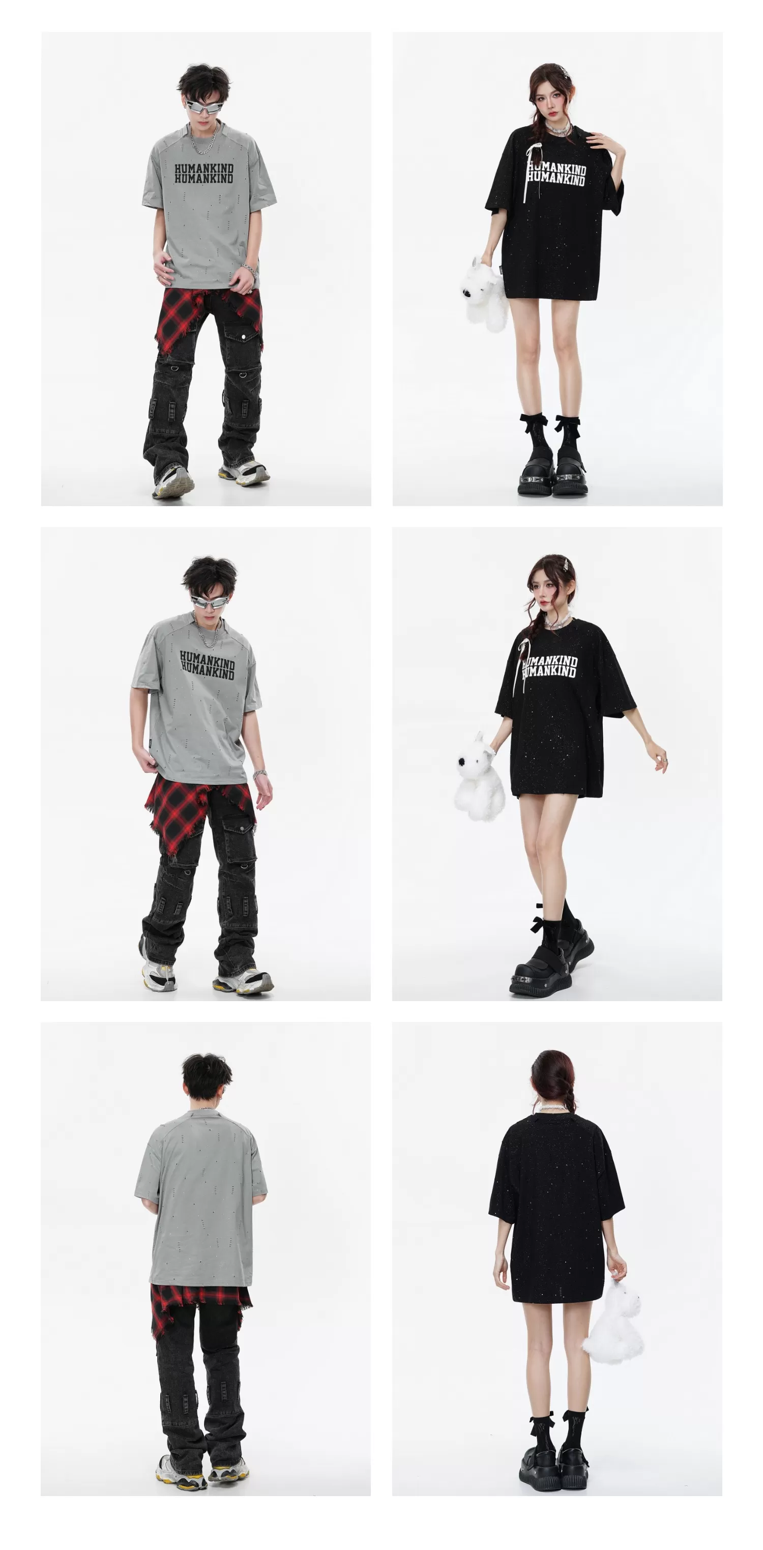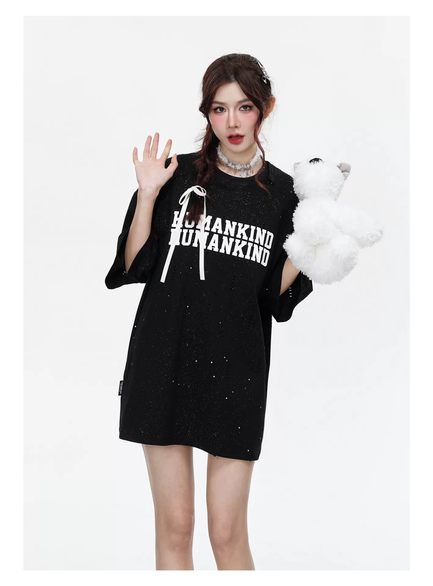 Featured Ripped Starry Double Layer Patchwork Round Neck Drop Shoulder Short Sleeve Featured Ripped Starry Double Layer Patchwork Round Neck Drop Shoulder Short Sleeve