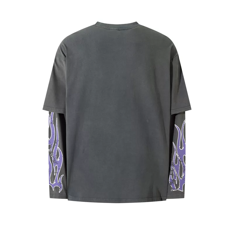 Flame Letter Print Fake Two-piece Long Sleeve Loose Retro Distressed Top Flame Letter Print Fake Two-piece Long Sleeve Loose Retro Distressed Top