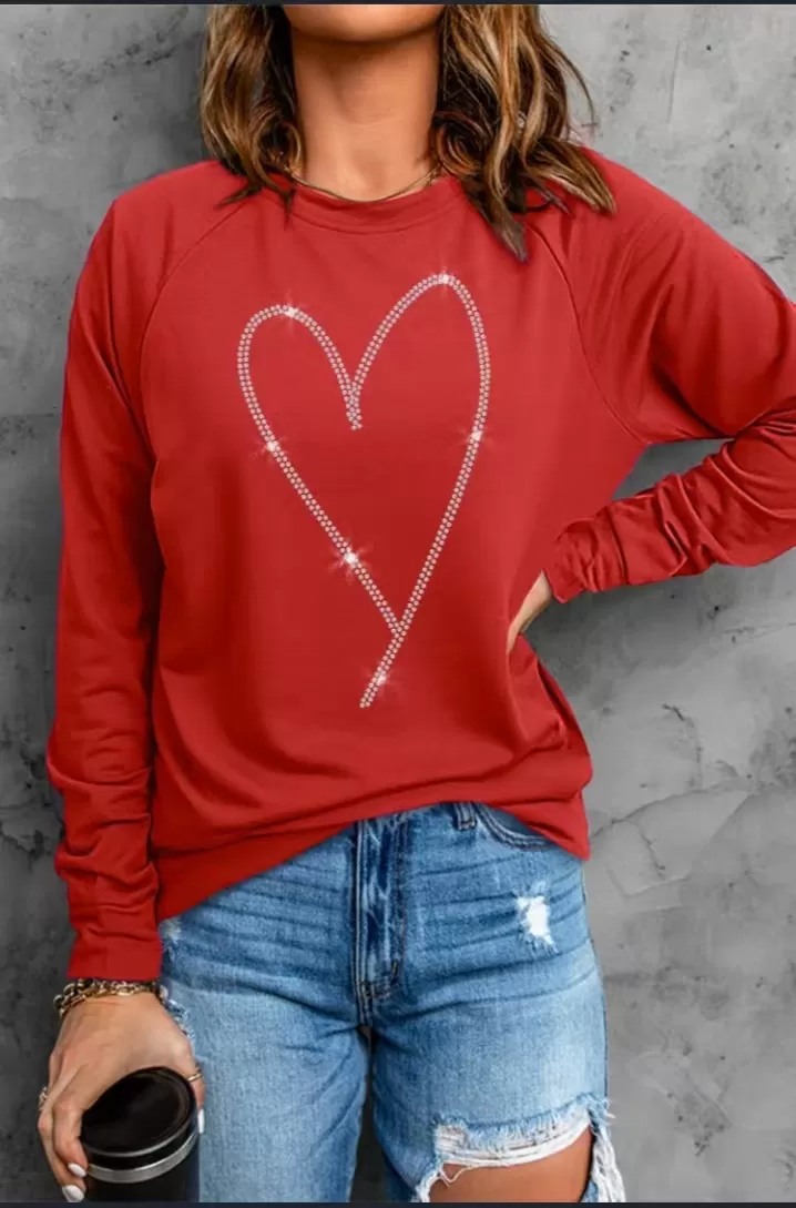 Heart Printing Round Neck Long Sleeve Sweatshirt Tops Heart Printing Round Neck Long Sleeve Sweatshirt Tops