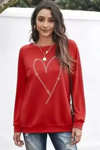 Heart Printing Round Neck Long Sleeve Sweatshirt Tops Heart Printing Round Neck Long Sleeve Sweatshirt Tops