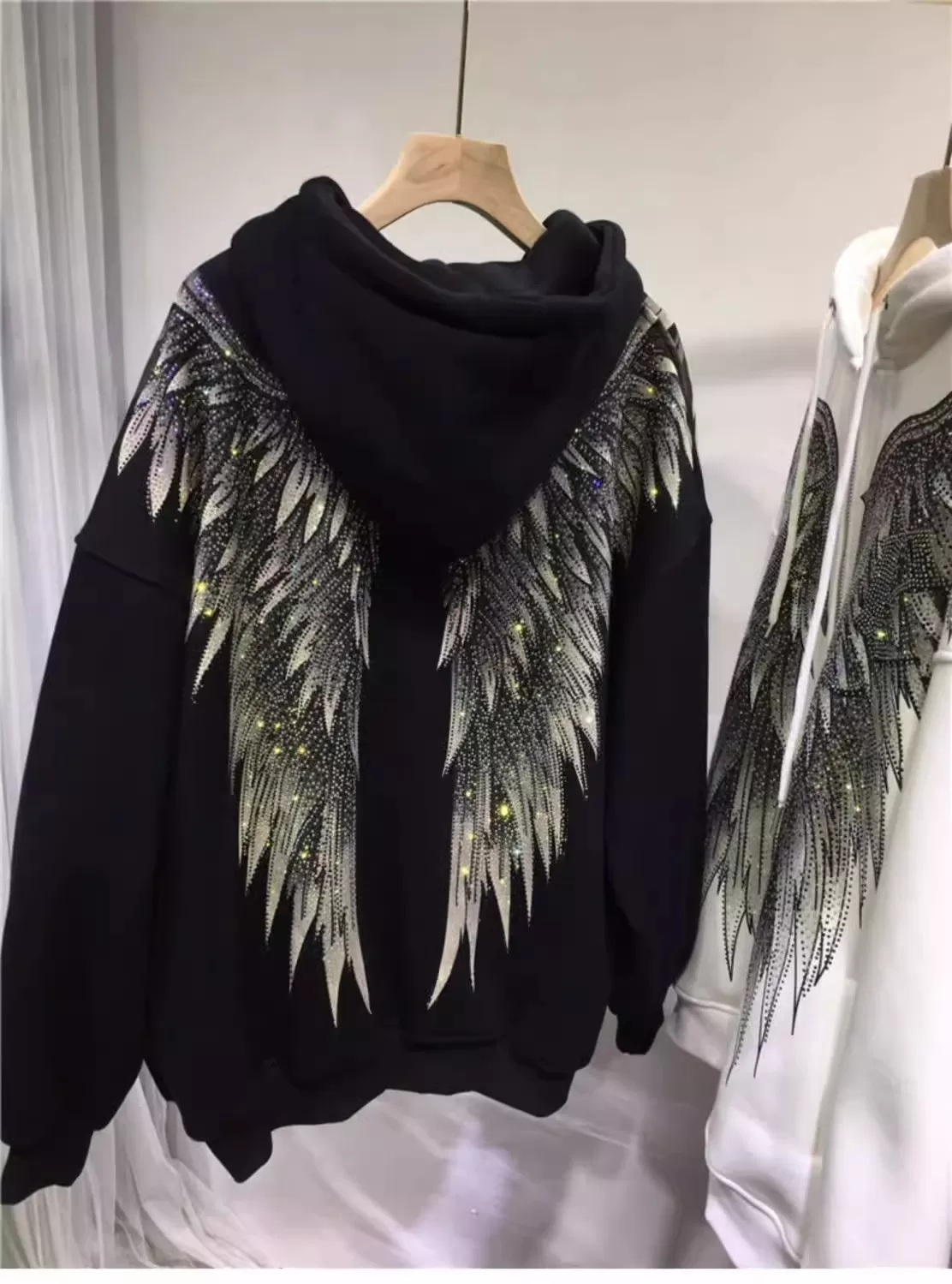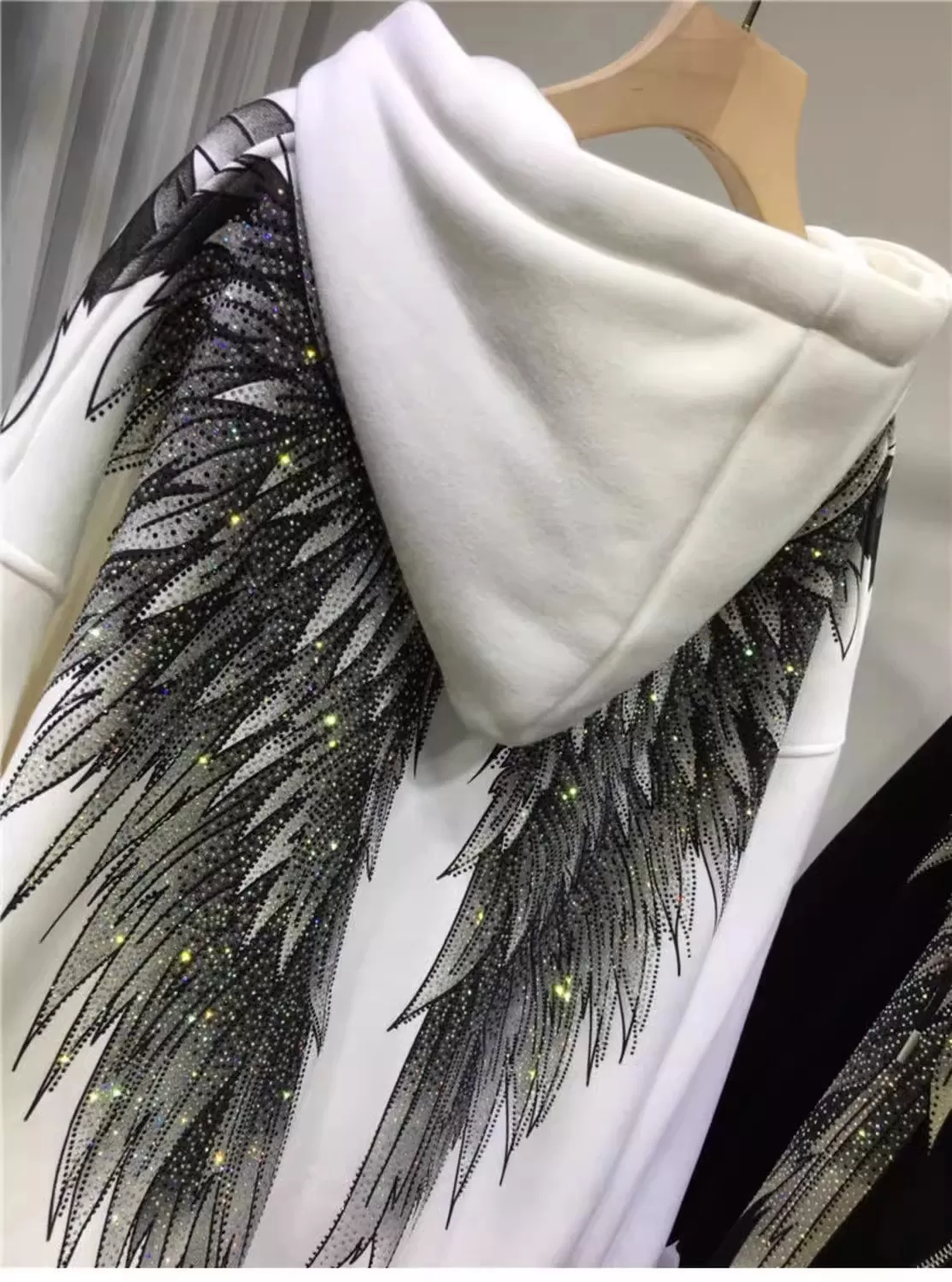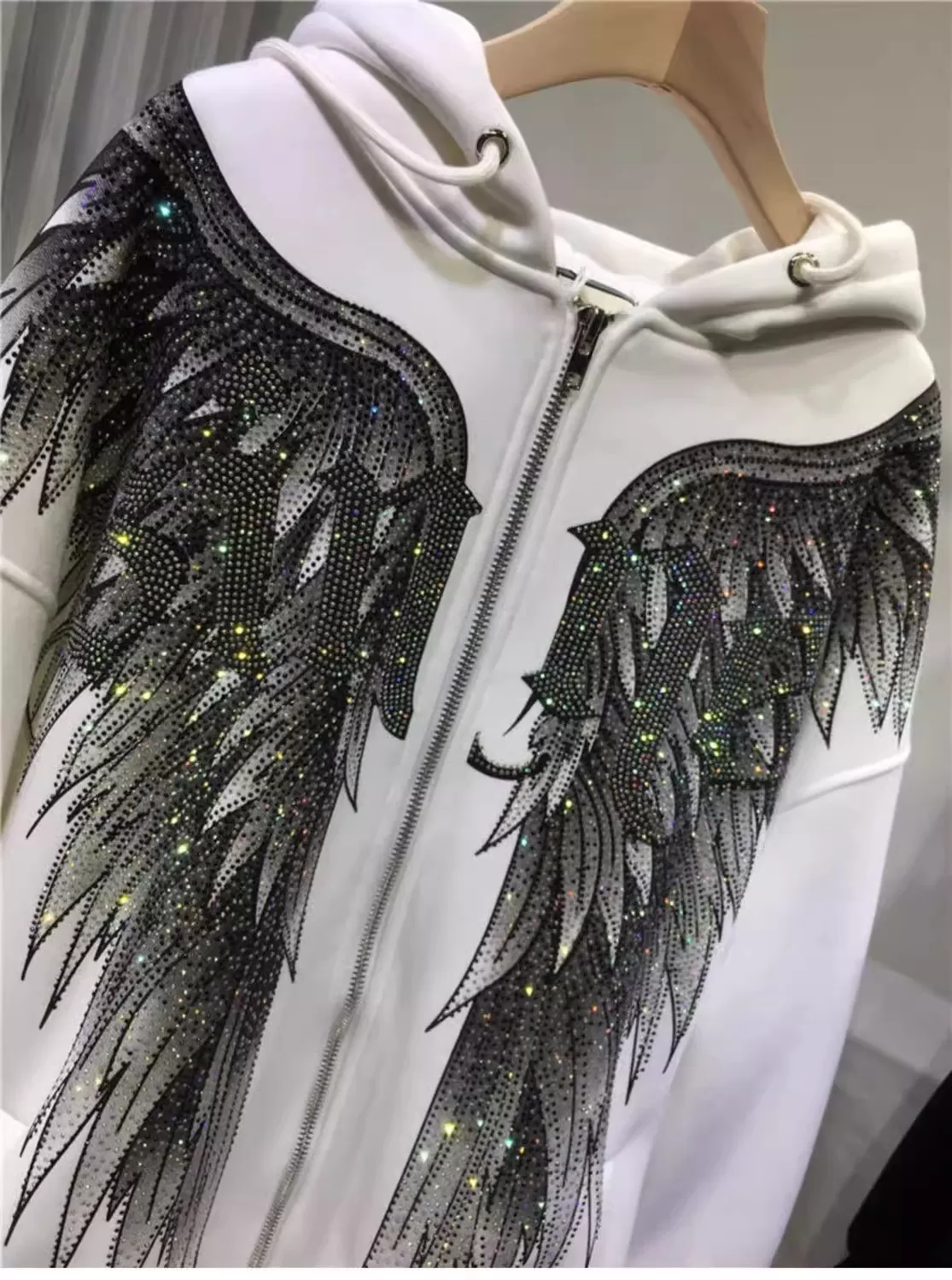Heavy Embroidery Hot Drilling Light Luxury Front And Rear Wings Hooded Fleece Padded Coat Sweater Heavy Embroidery Hot Drilling Light Luxury Front And Rear Wings Hooded Fleece Padded Coat Sweater