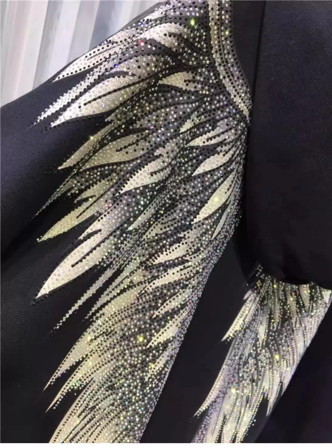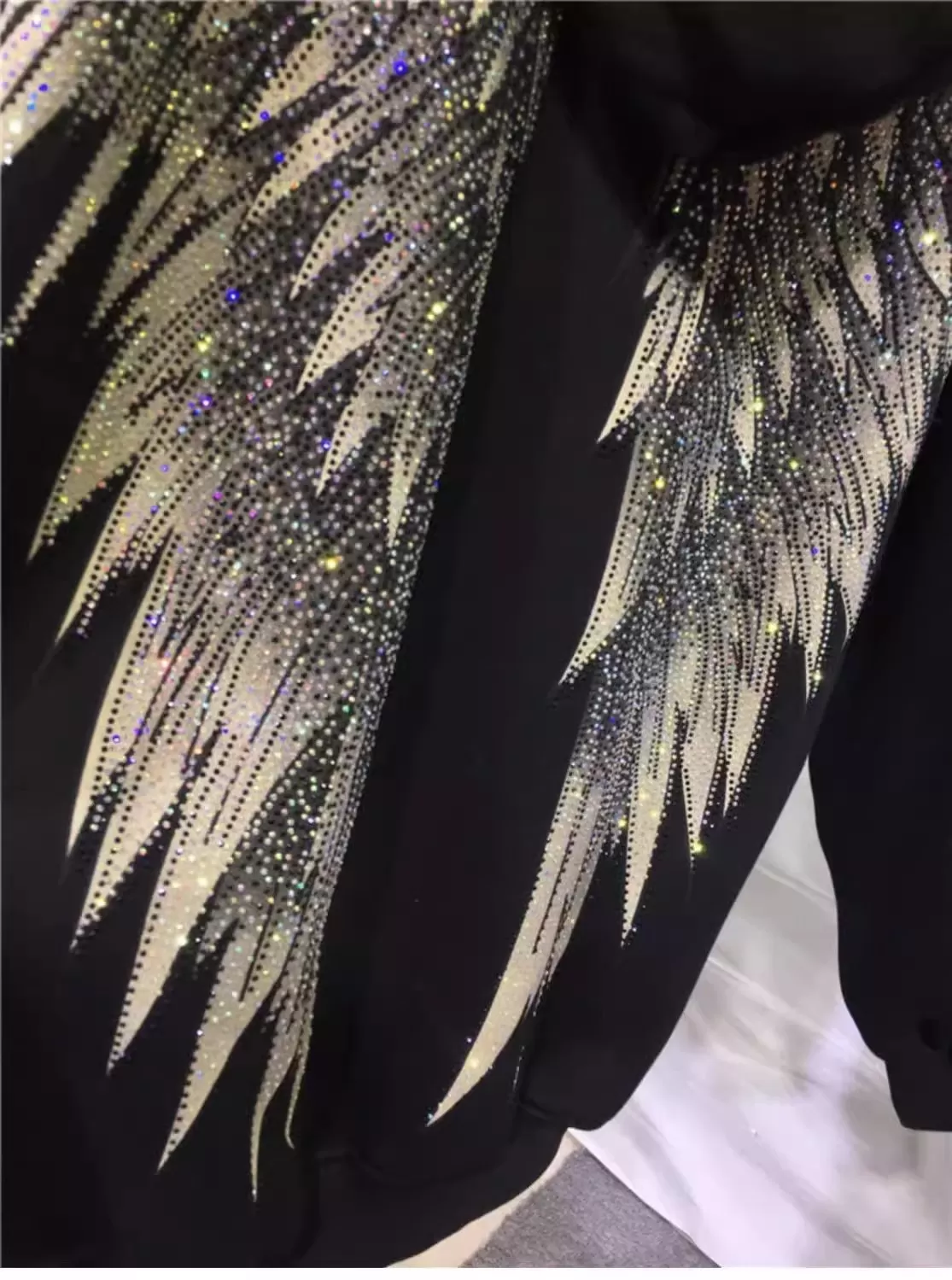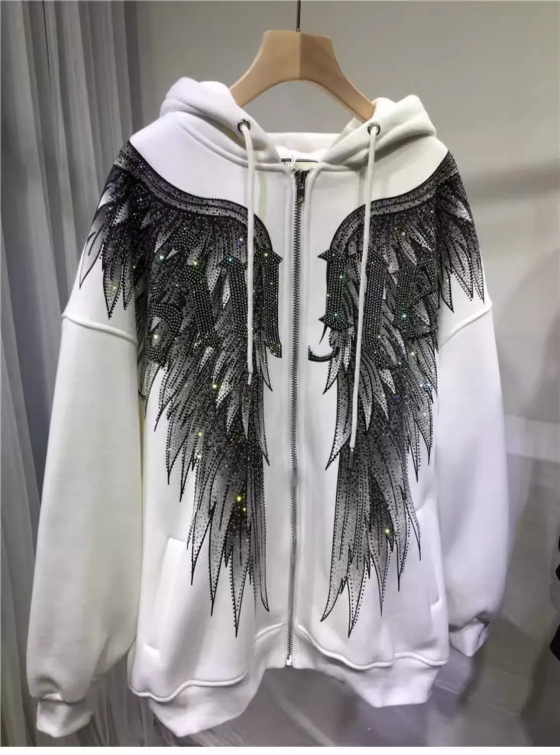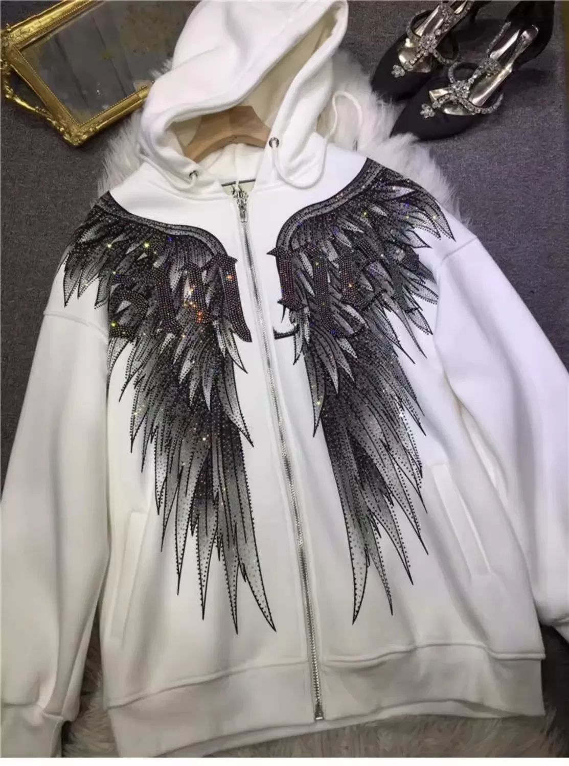 Heavy Embroidery Hot Drilling Light Luxury Front And Rear Wings Hooded Fleece Padded Coat Sweater Heavy Embroidery Hot Drilling Light Luxury Front And Rear Wings Hooded Fleece Padded Coat Sweater