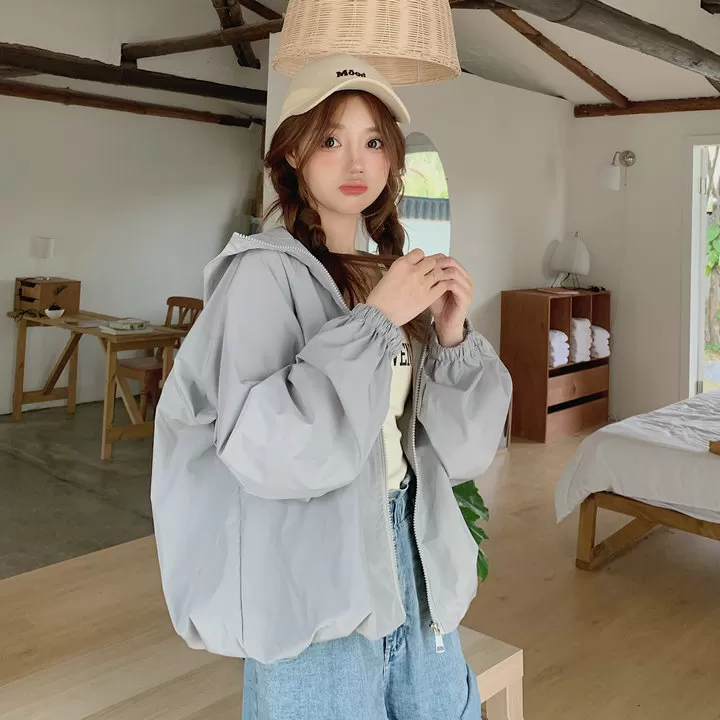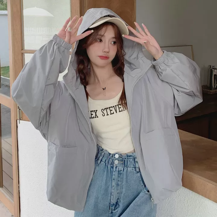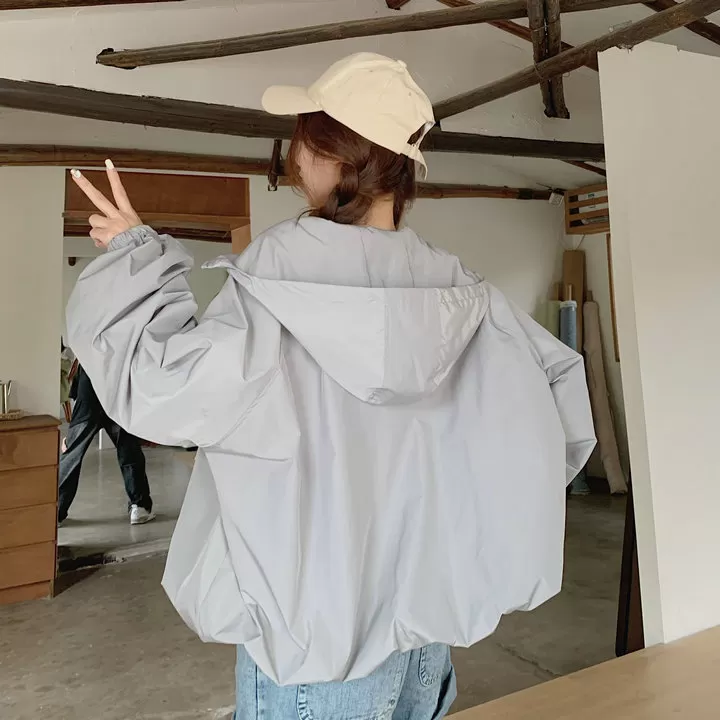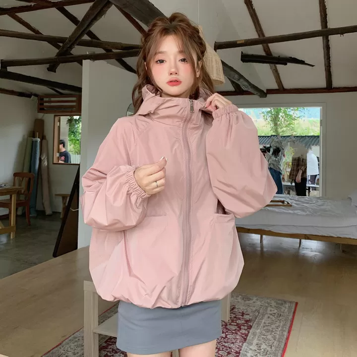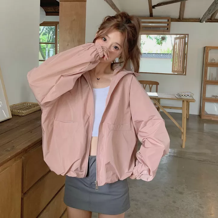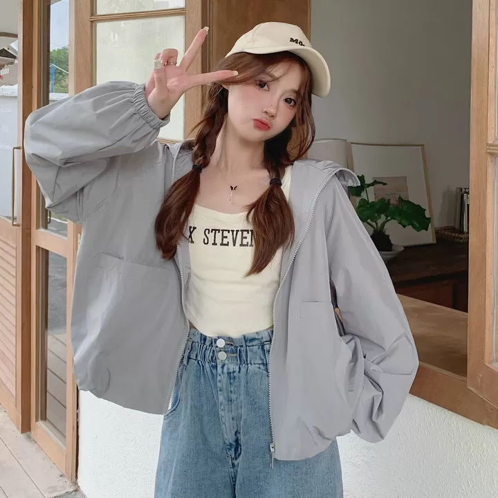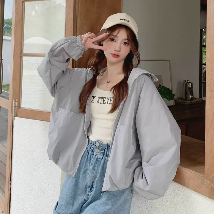 Hooded Short Sports Jacket Women's Casual Loose Solid Color Zipper Shell Jacket Hooded Short Sports Jacket Women's Casual Loose Solid Color Zipper Shell Jacket