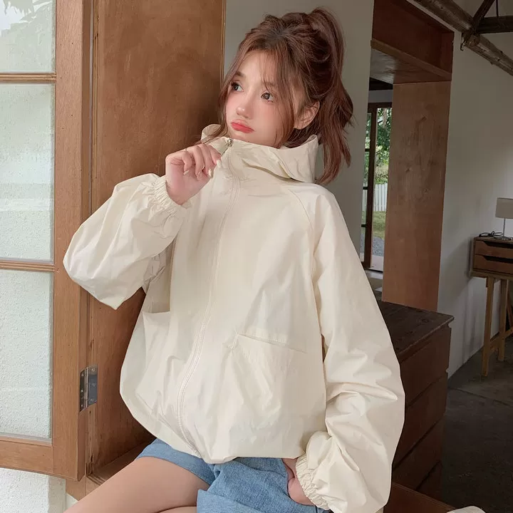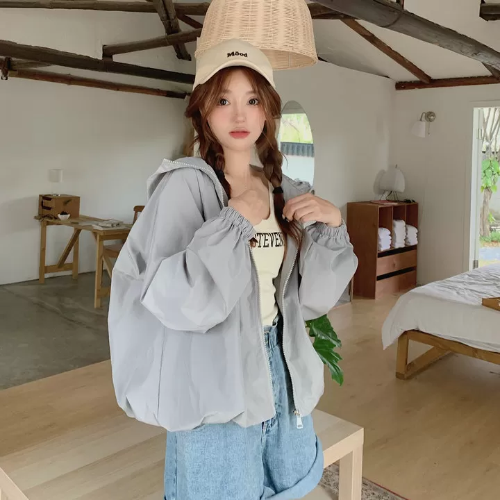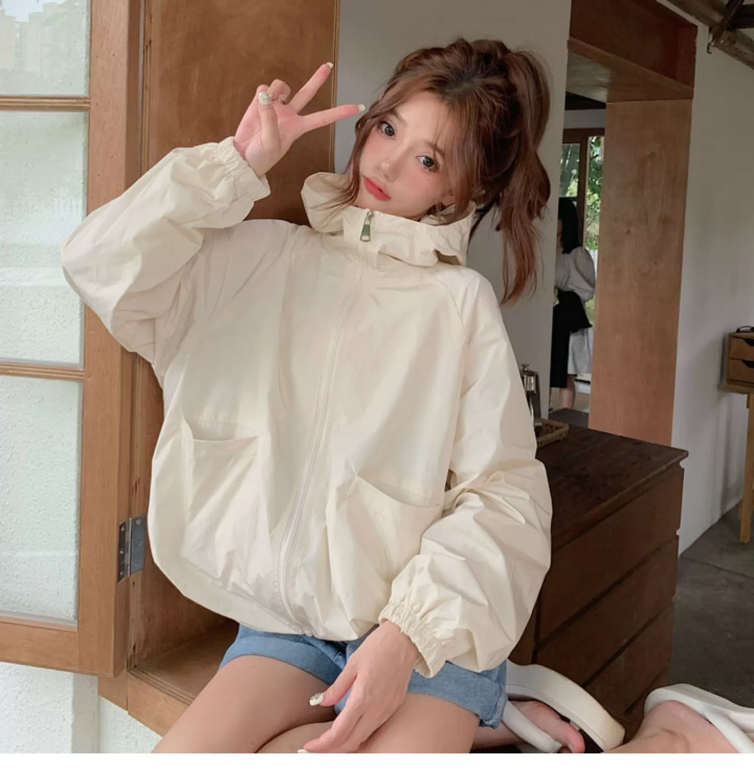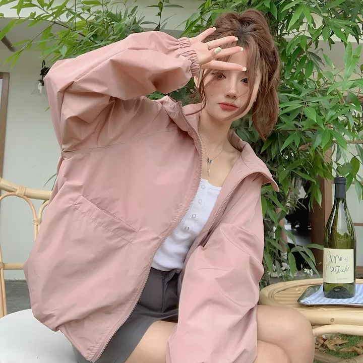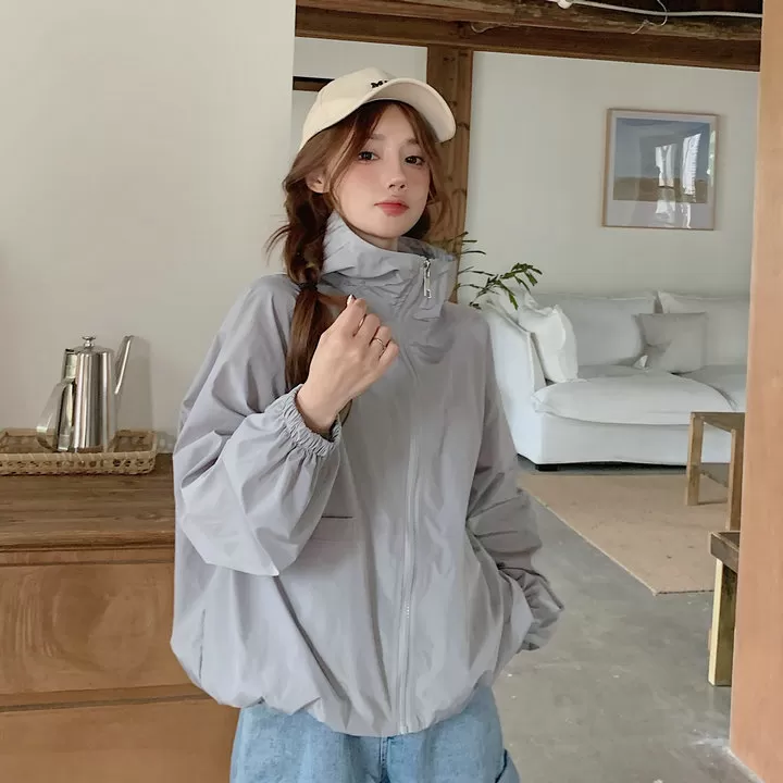 Hooded Short Sports Jacket Women's Casual Loose Solid Color Zipper Shell Jacket Hooded Short Sports Jacket Women's Casual Loose Solid Color Zipper Shell Jacket