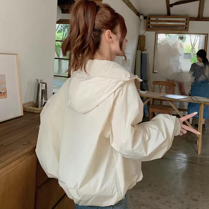 Hooded Short Sports Jacket Women's Casual Loose Solid Color Zipper Shell Jacket